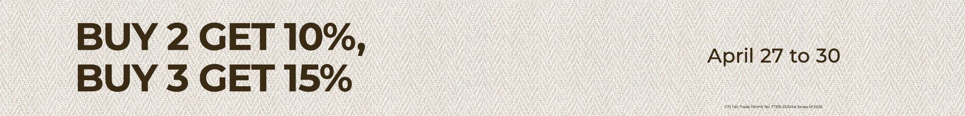 Buy 2 Get 10%, Buy 3 Get 15%