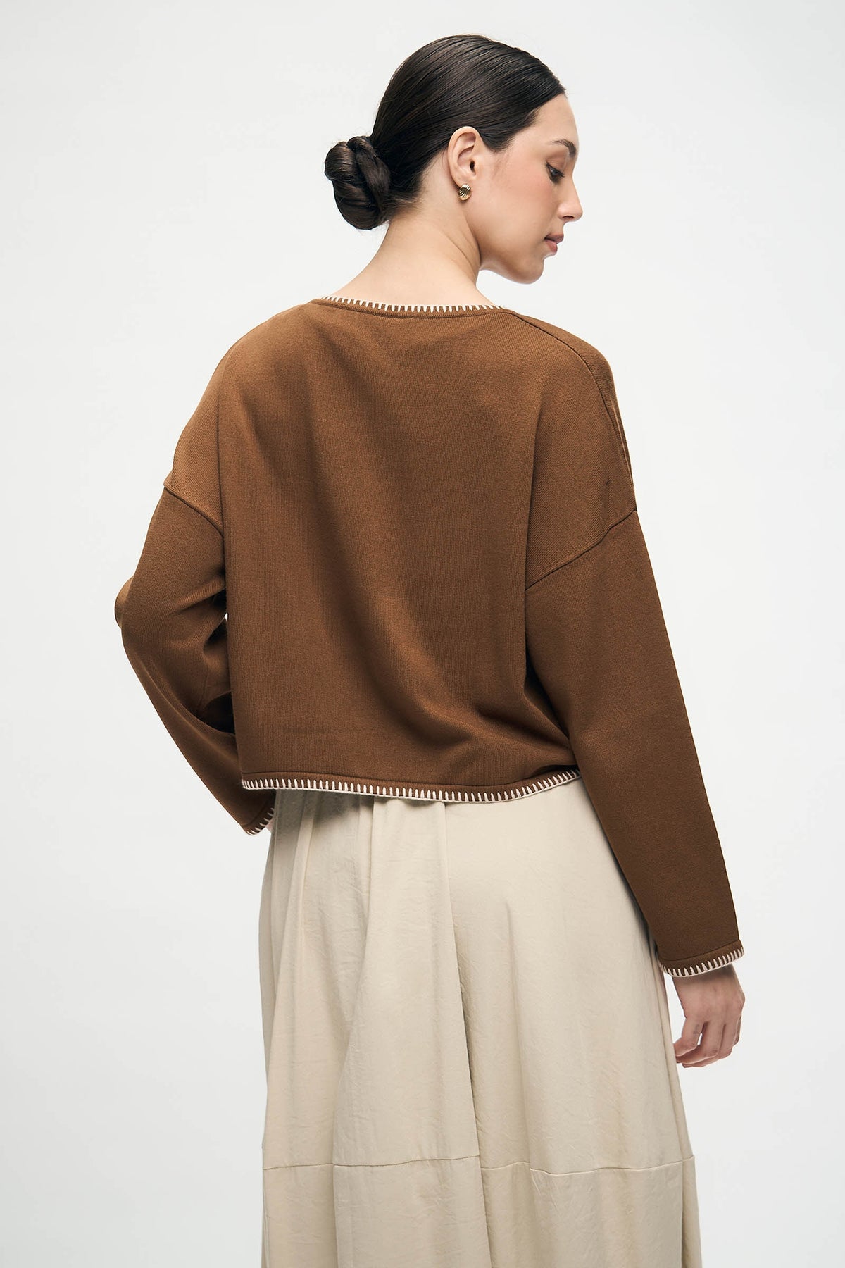 Women's Drop Shoulder Cardigan with Blanket Stitch