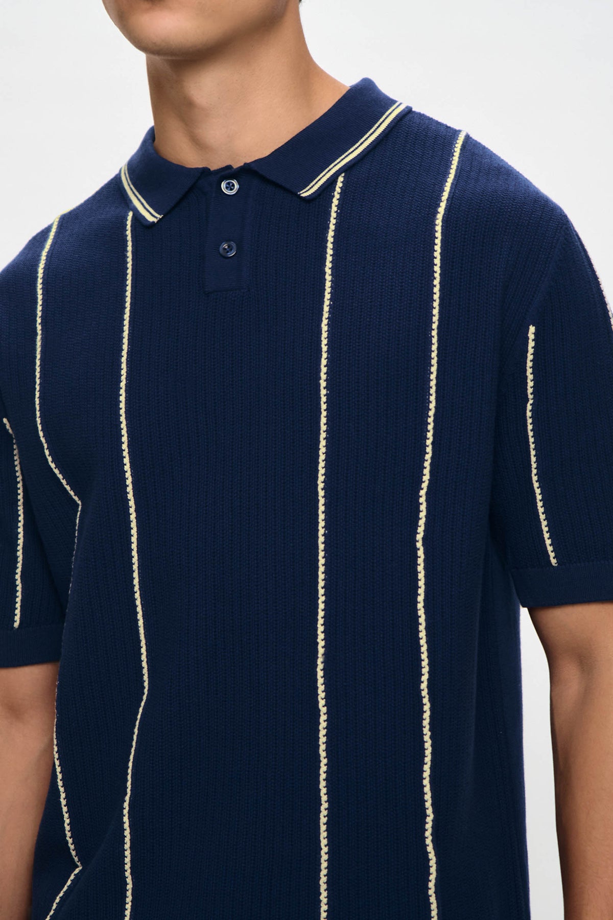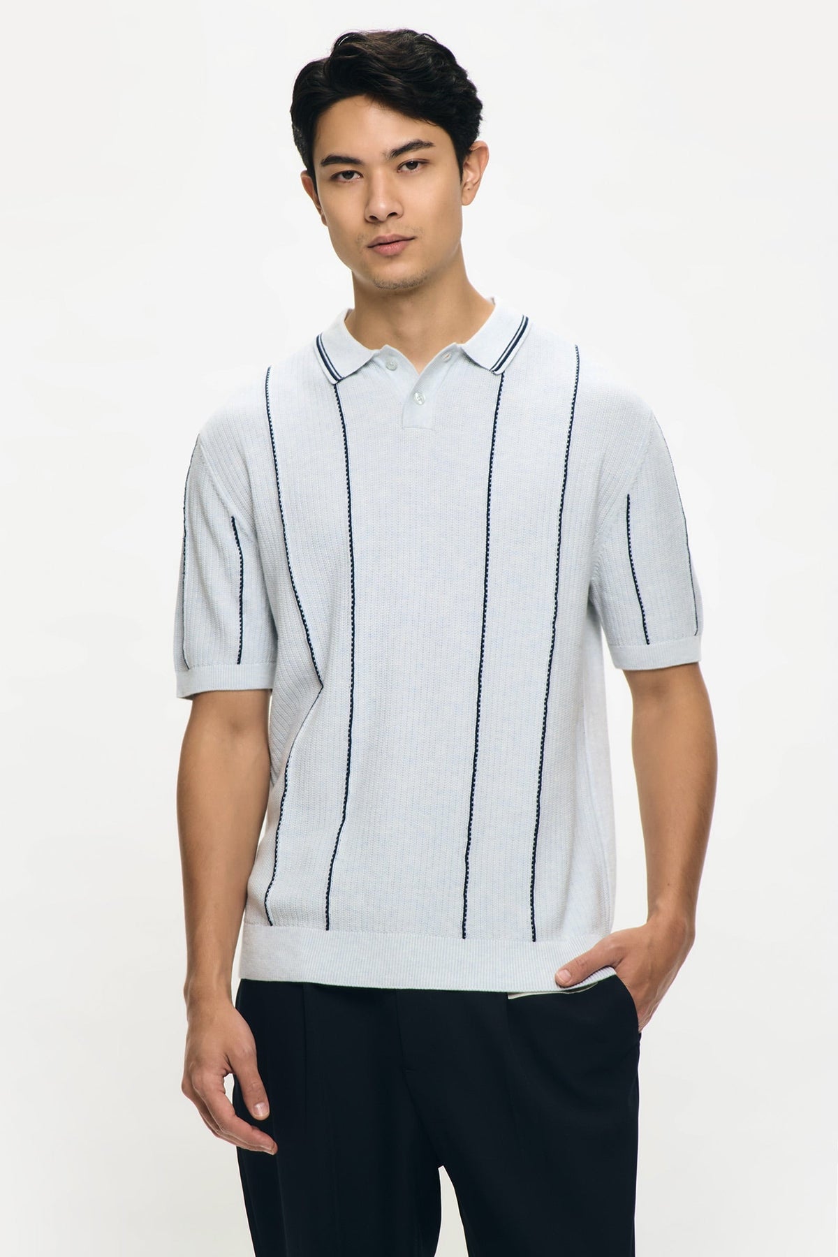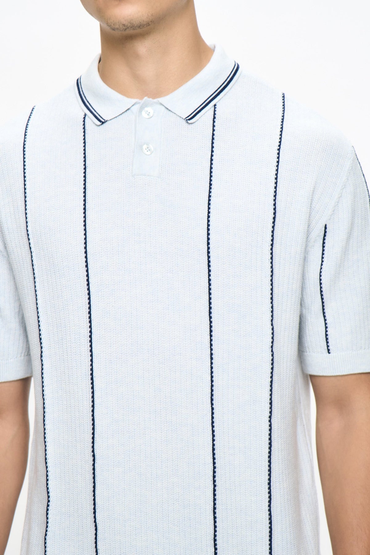 • Design Details: Regular Collar, 2 Button Functional Placket, Short Sleeve, Ribbed, Collar, Cuff and Hem, Mixed Texture Knit