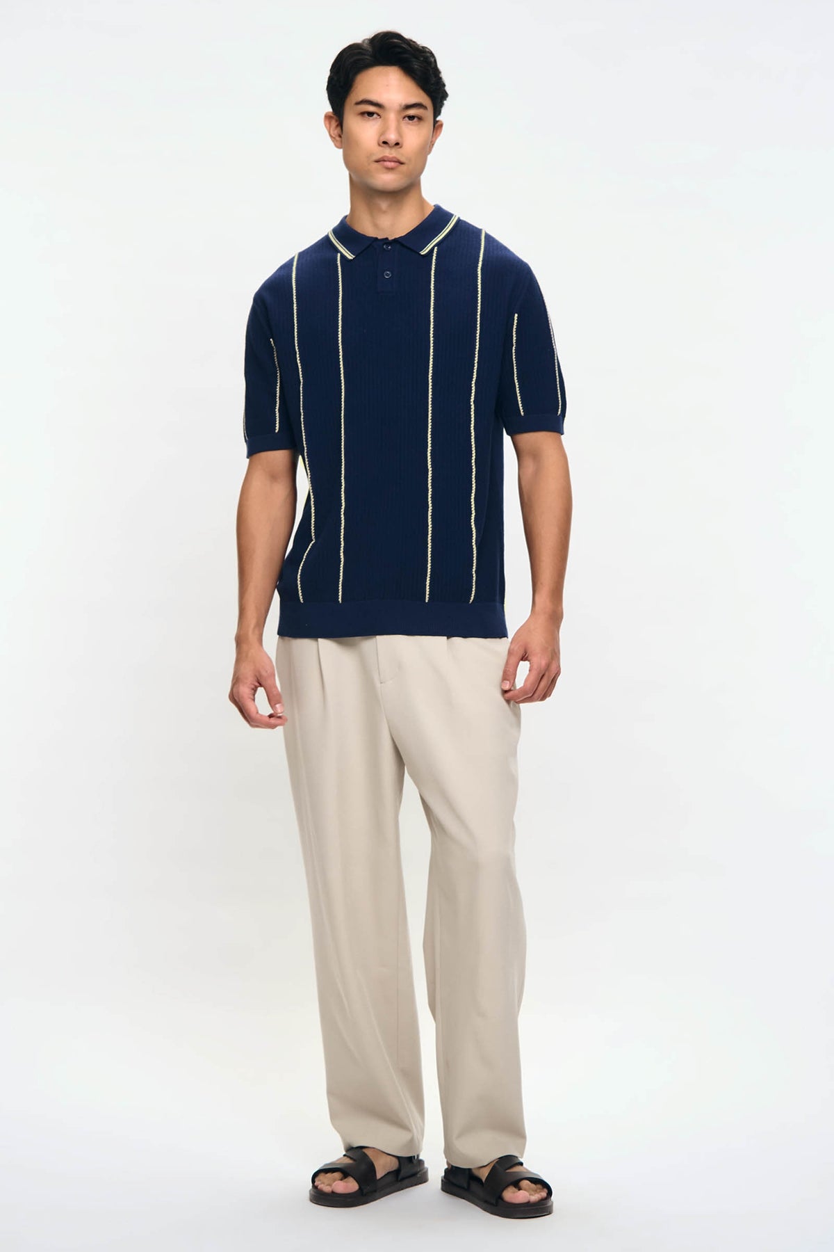 Men's Striped Textured Polo