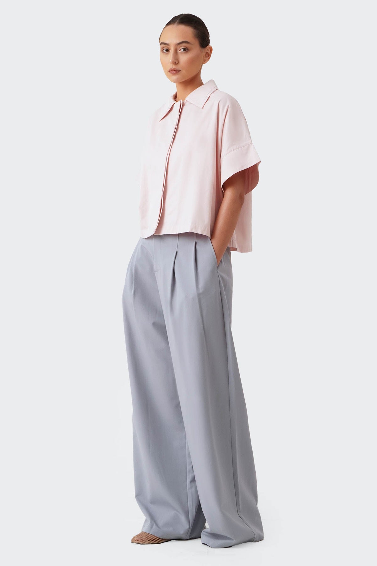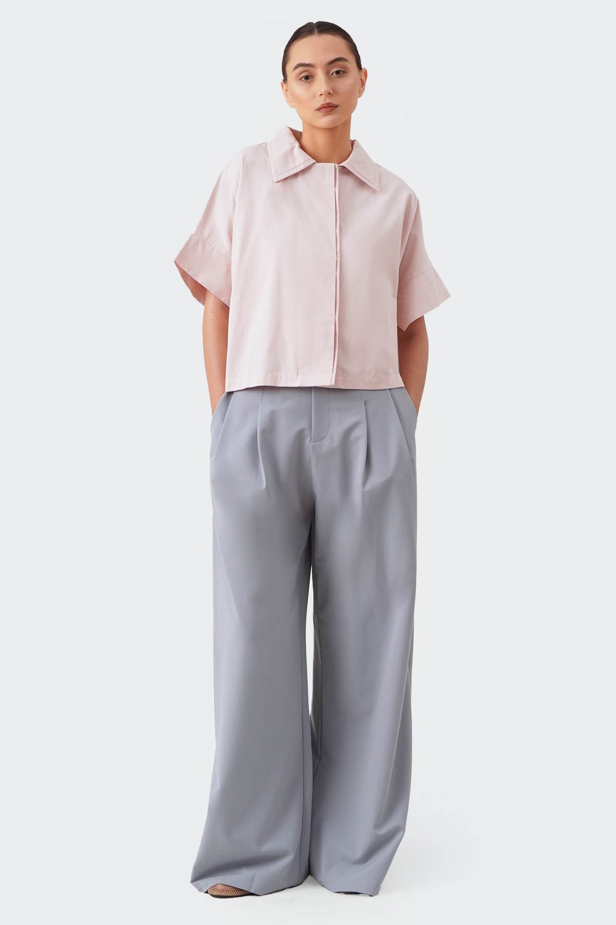 Women's Boxy Extended Tab Sleeve Thick Placket Shirt