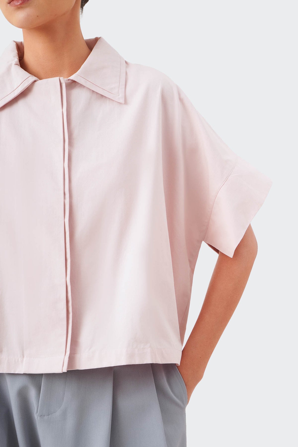 • Design Details: Duplicate Collar and Button Up Placket, Open Tab Sleeves