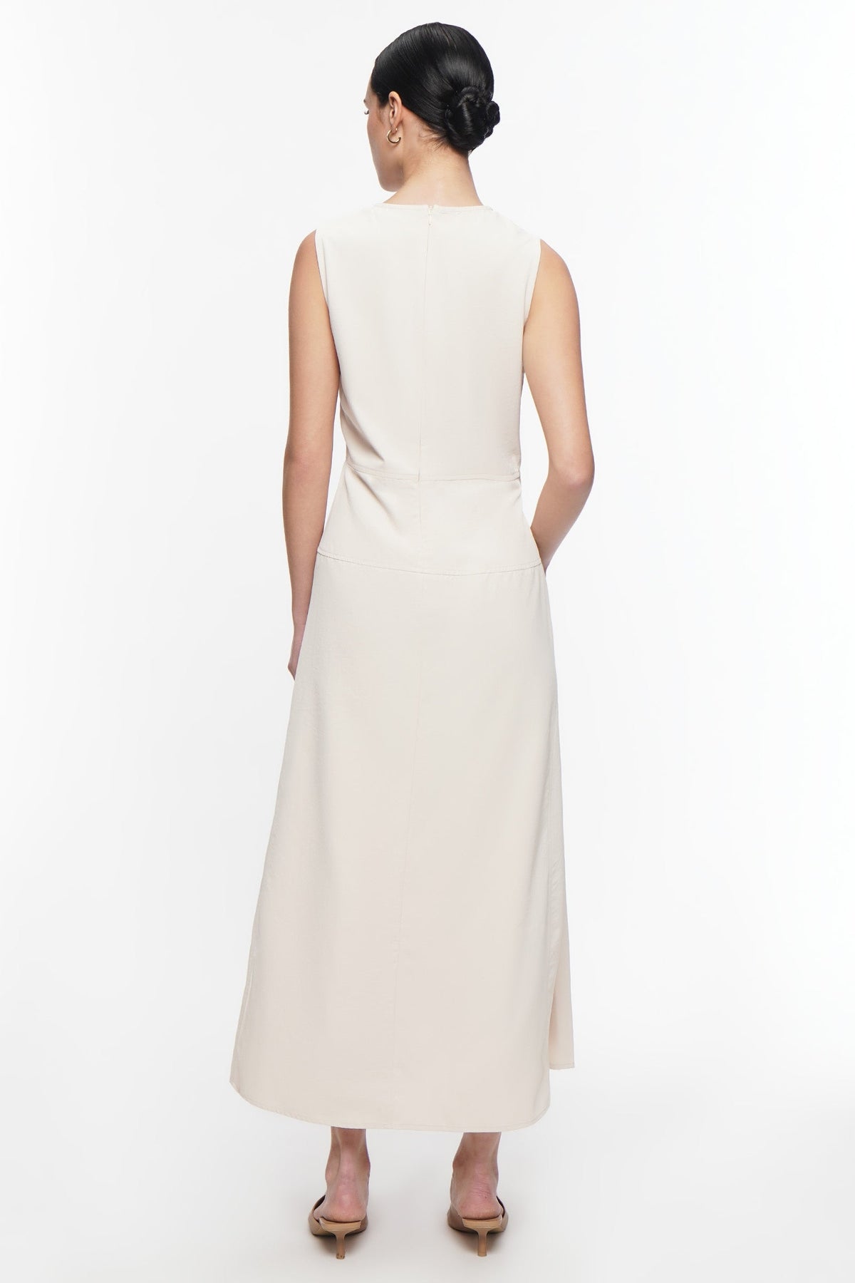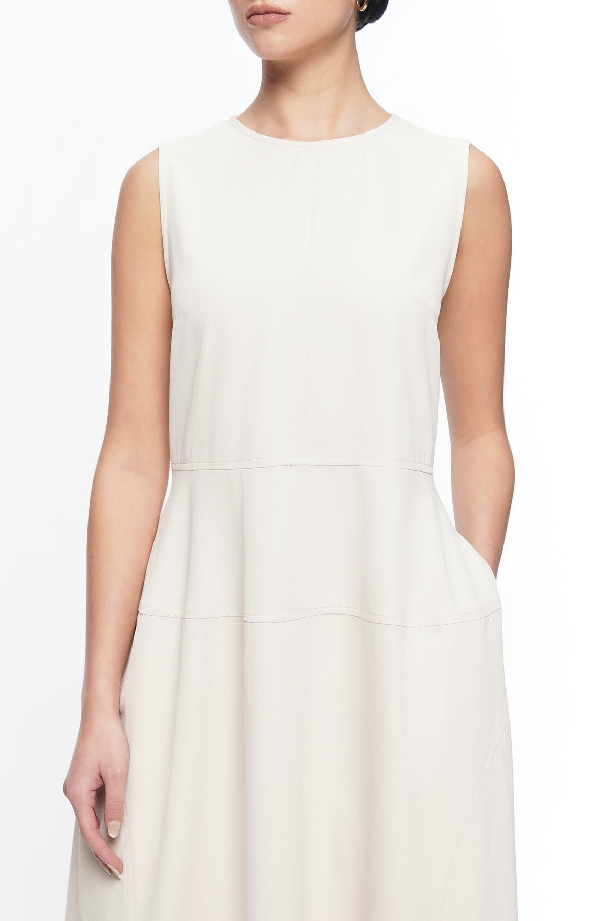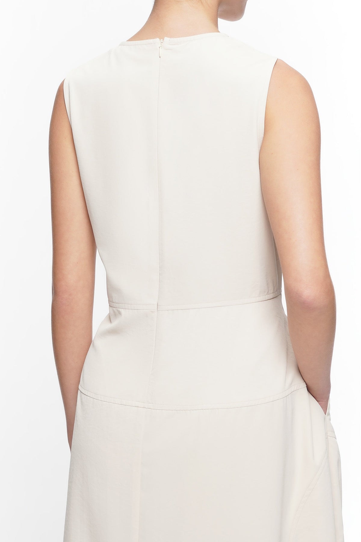 • Design Details: Round Neck, Bust Darts, Godet, Back Zipper
