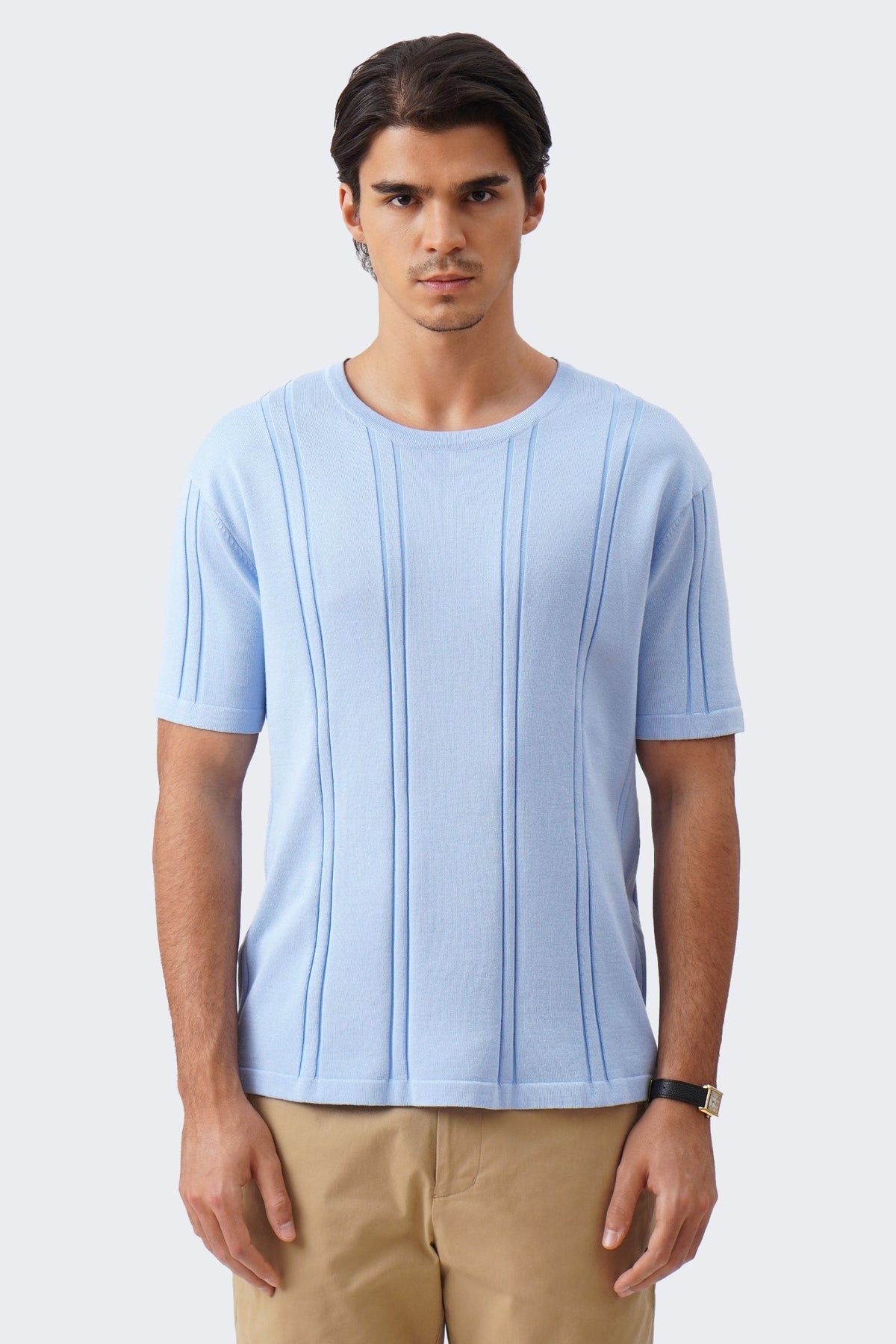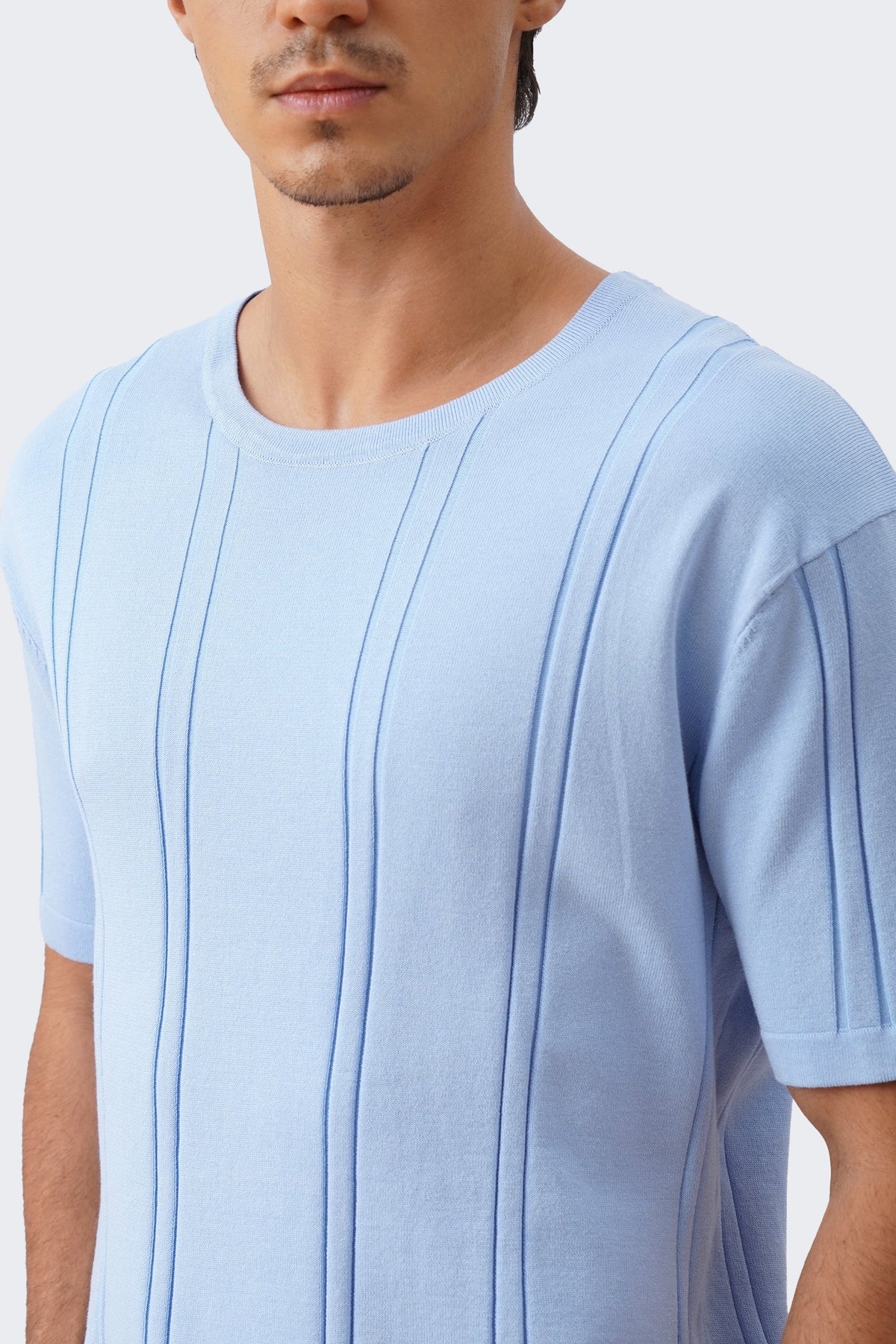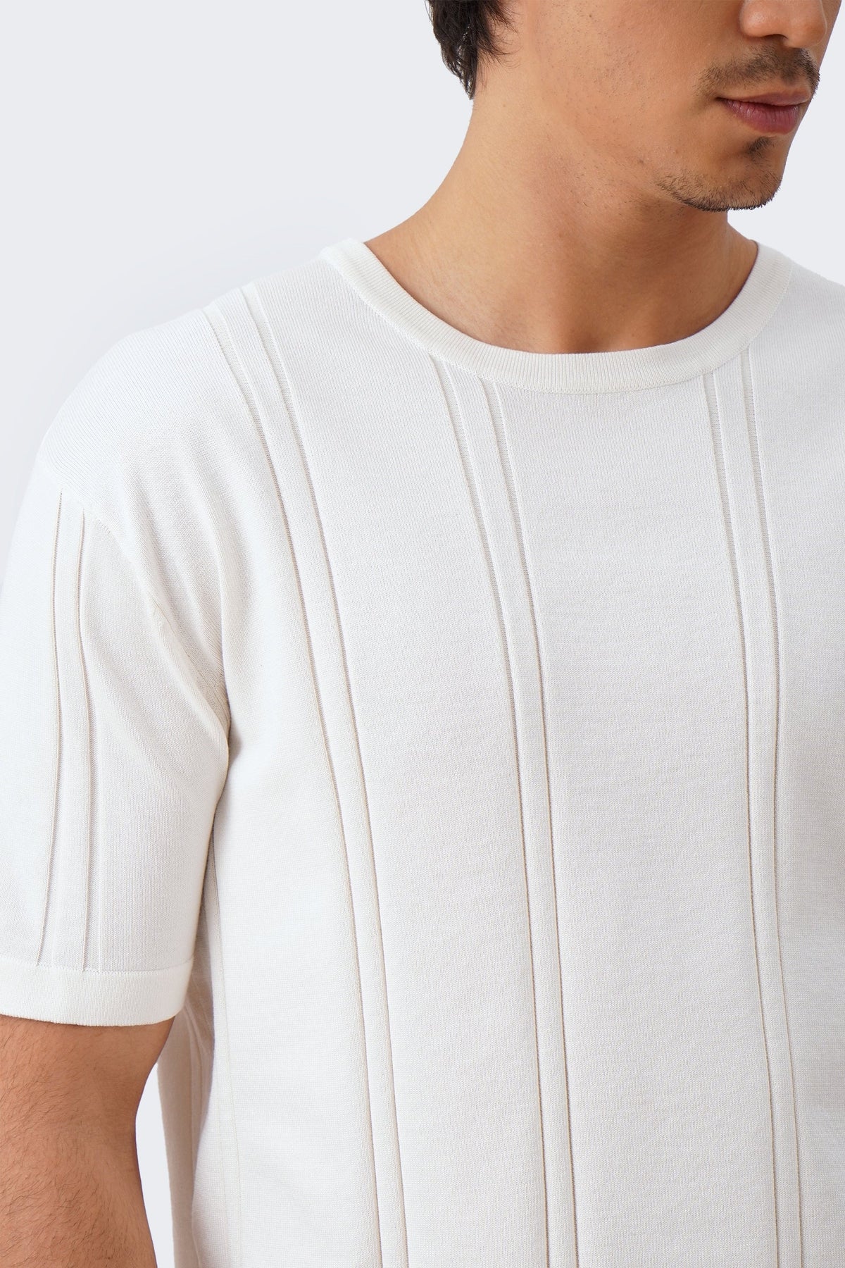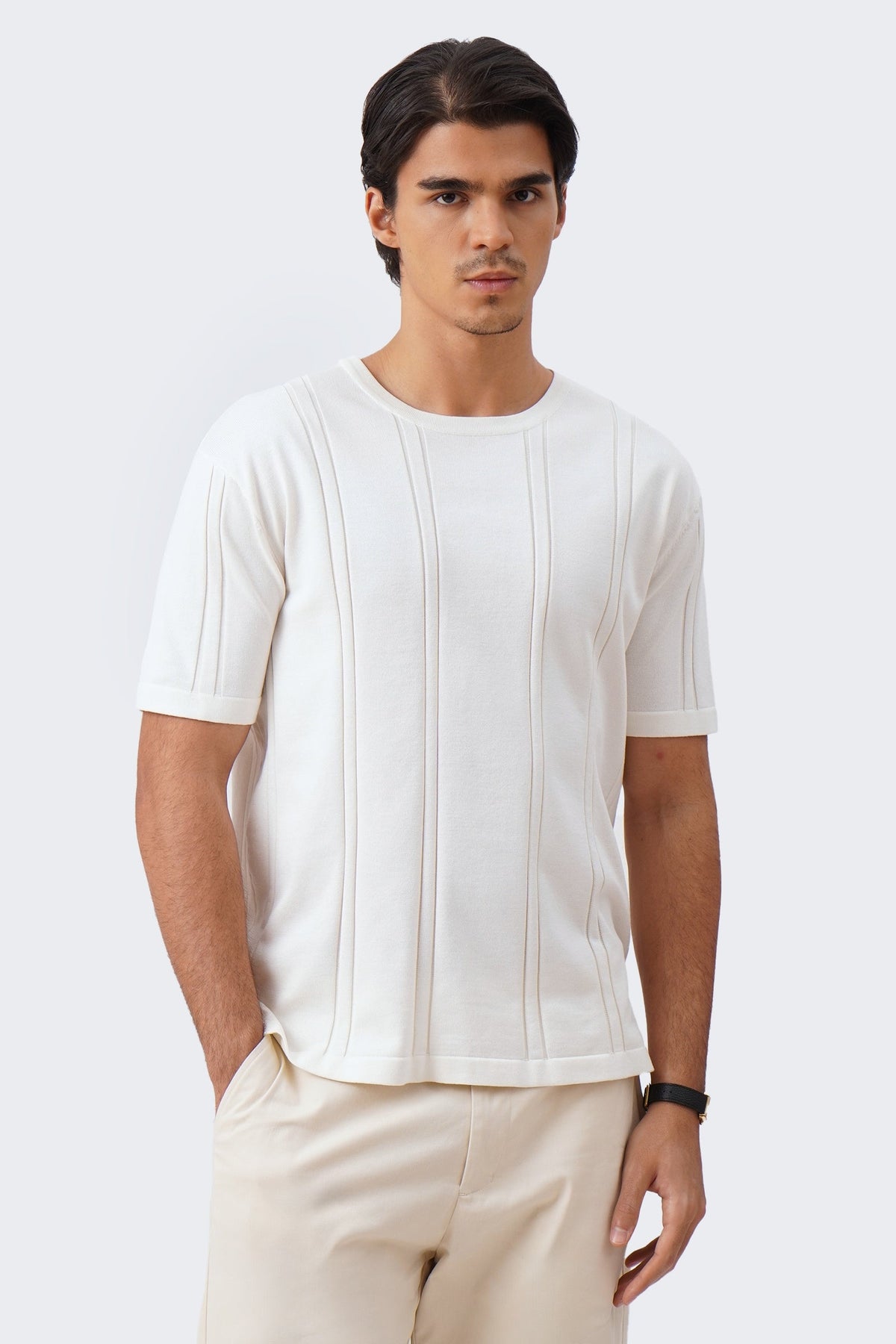 • Design Details: Round Neck, Ribbed Neckband, Sleeve Band & Hem Band, Irregular Vertical Striped Knit, Set in Sleeves