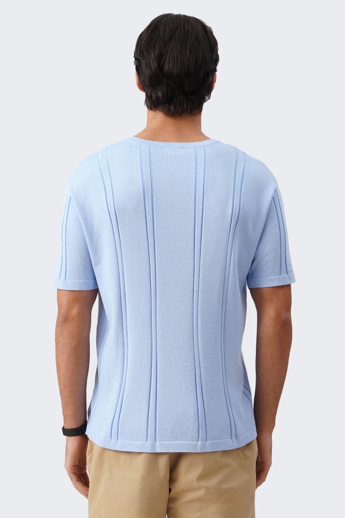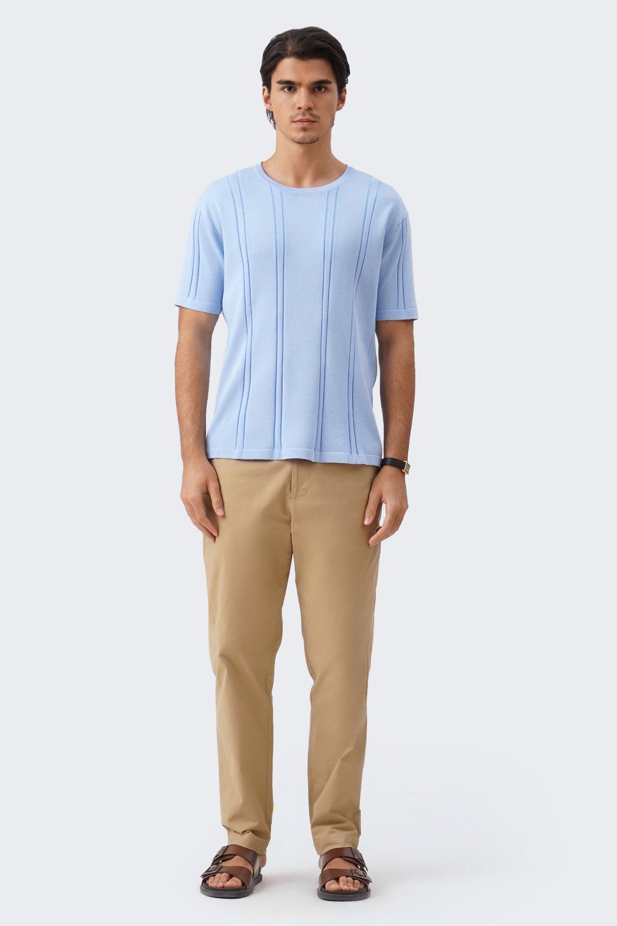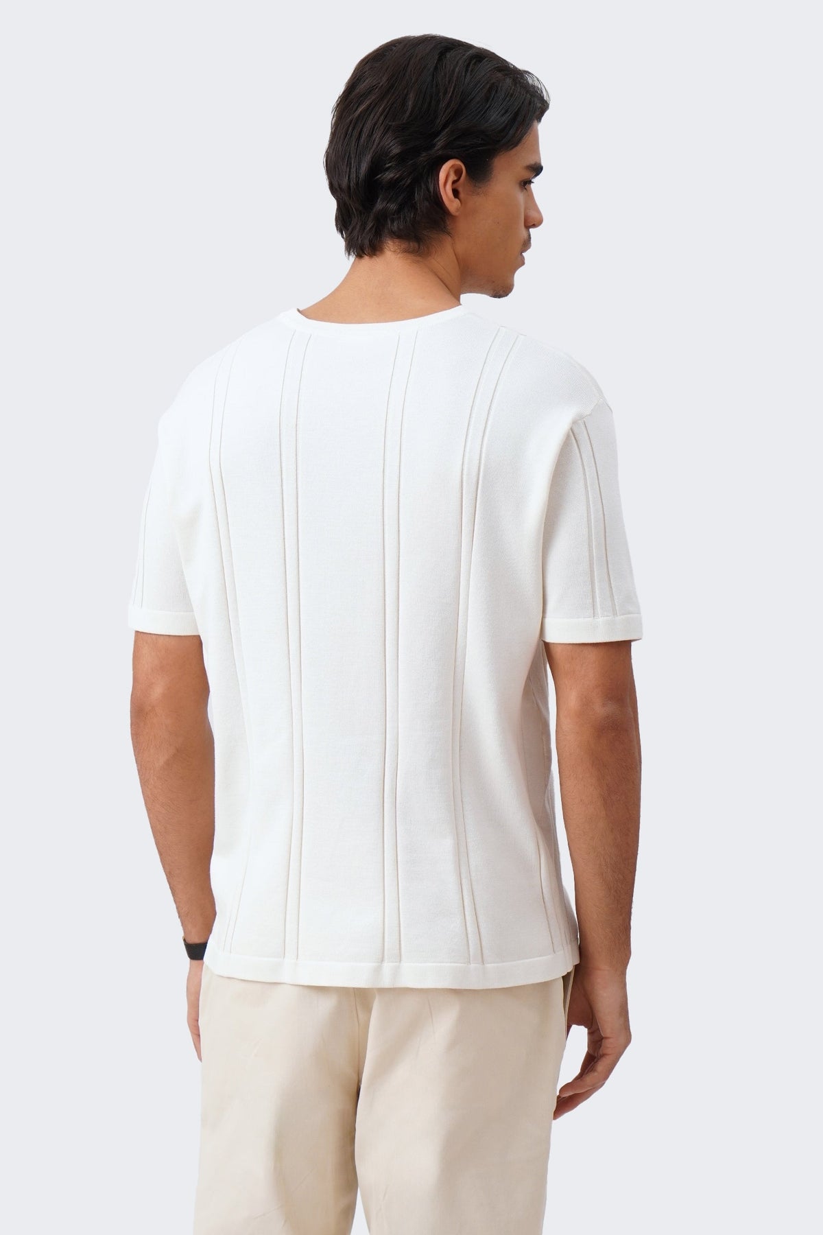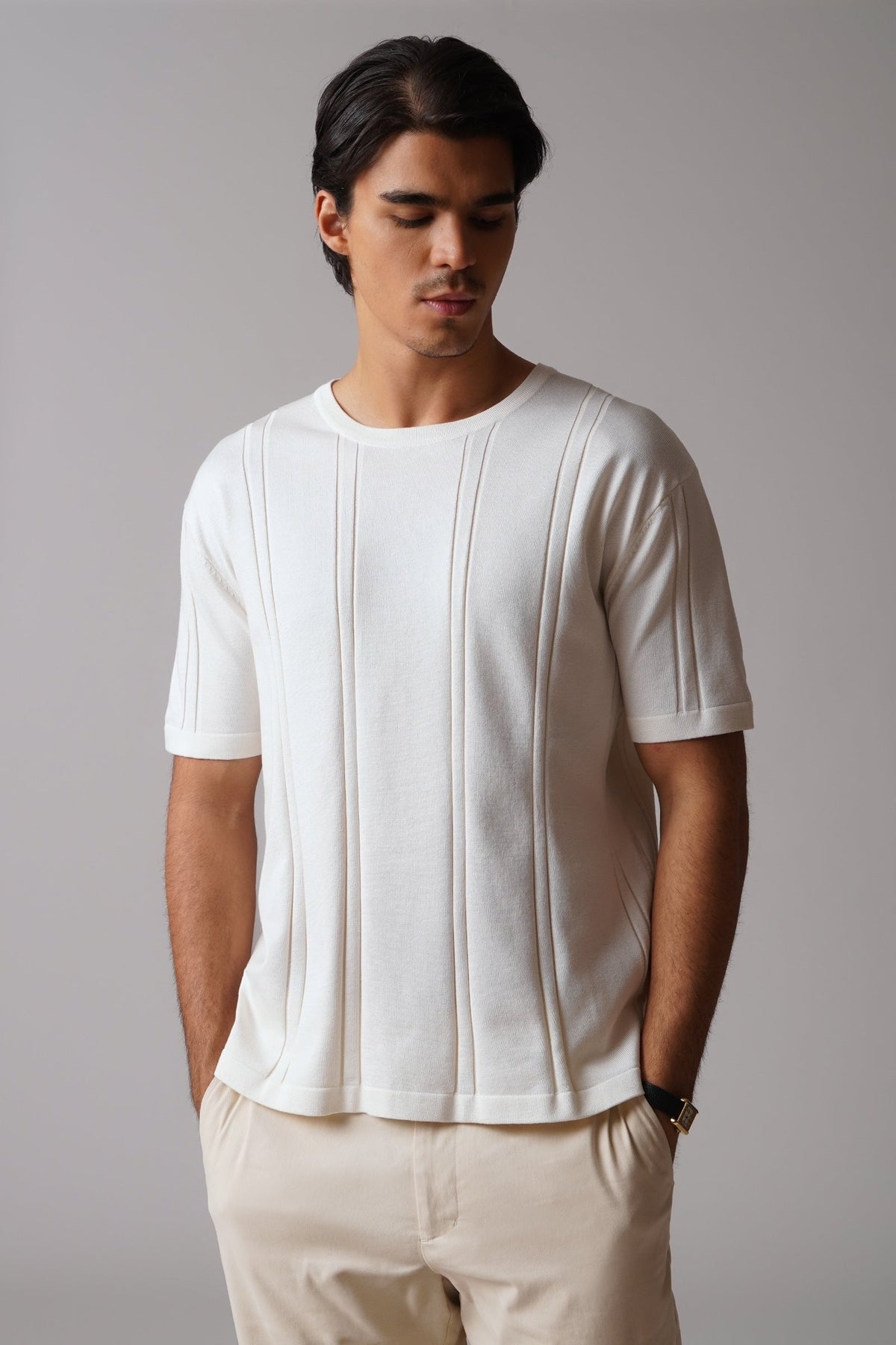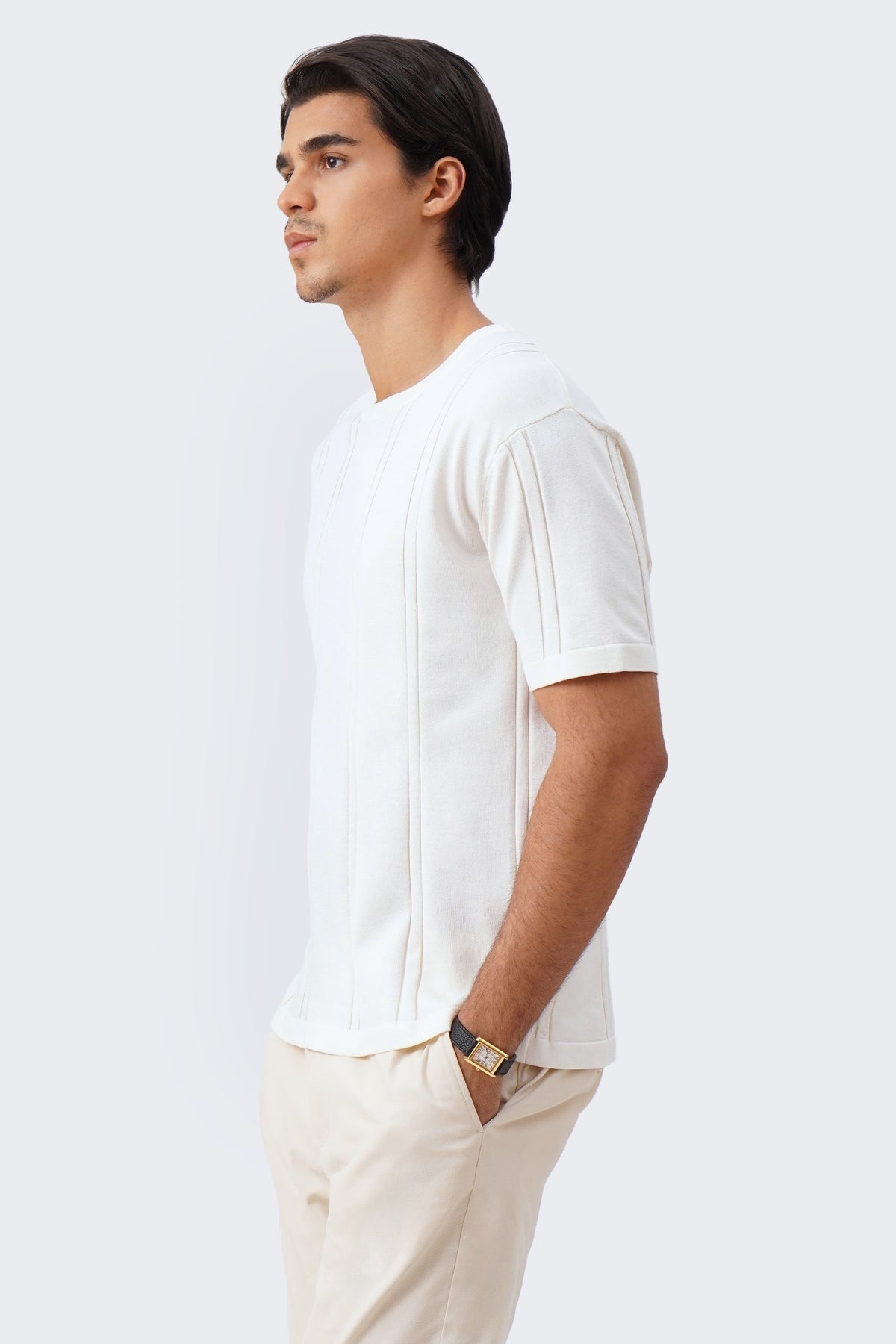 • Design Details: Round Neck, Ribbed Neckband, Sleeve Band & Hem Band, Irregular Vertical Striped Knit, Set in Sleeves