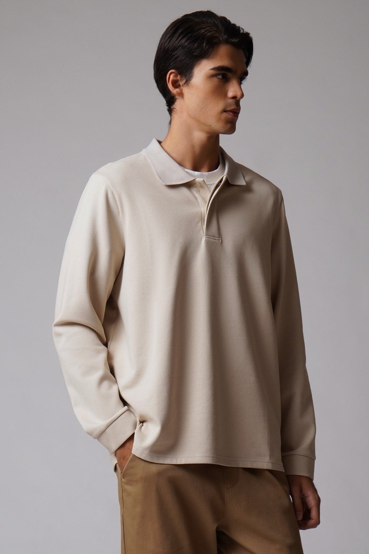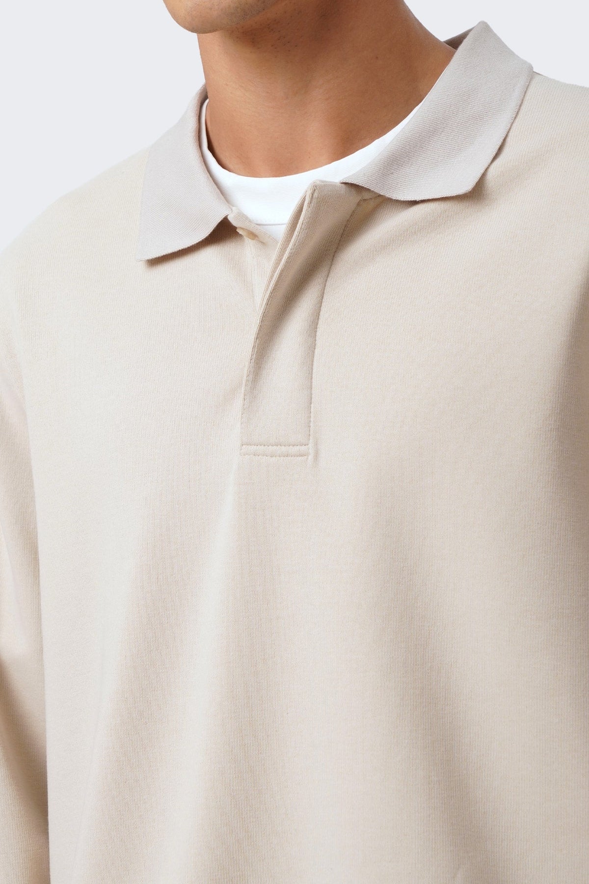 The model is 189cm/6'2" and wears a size Extra Large for color Oatmilk
