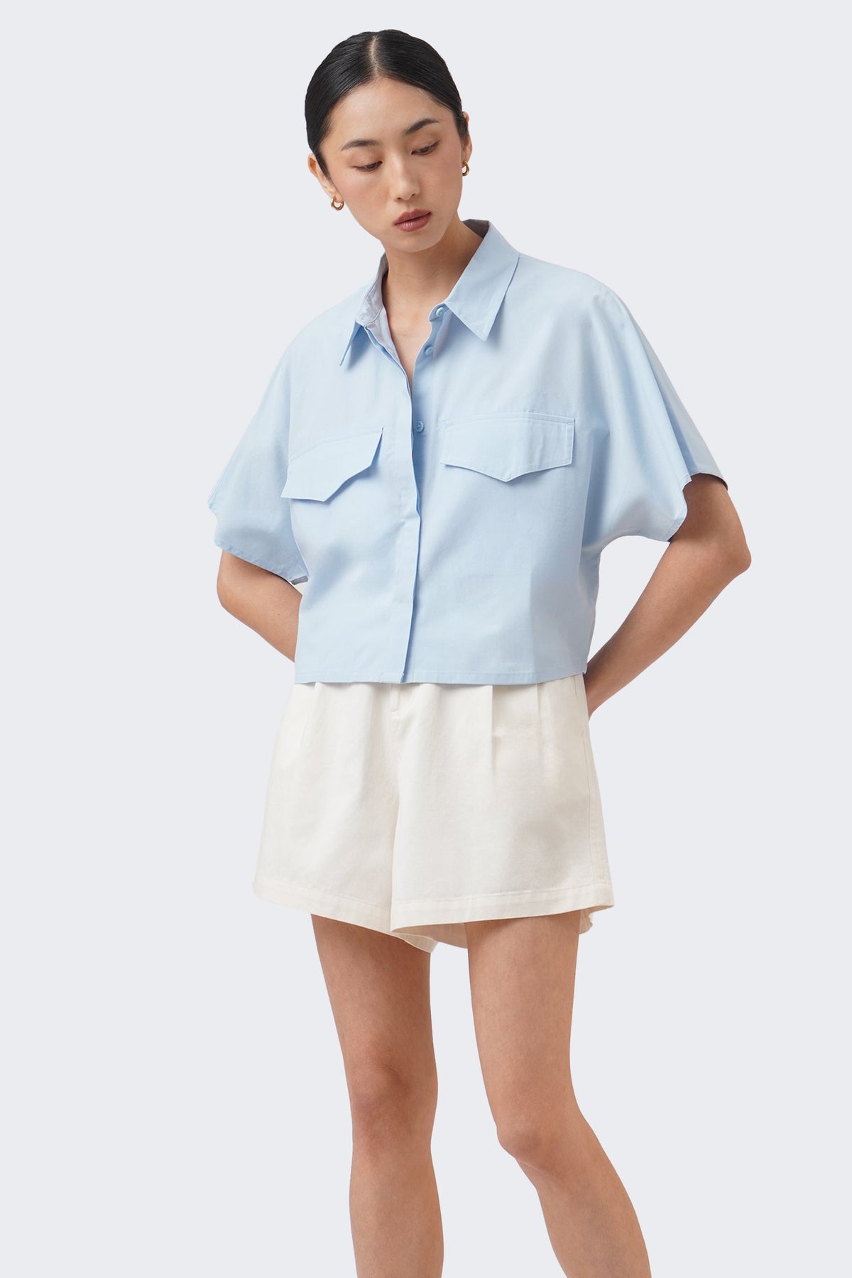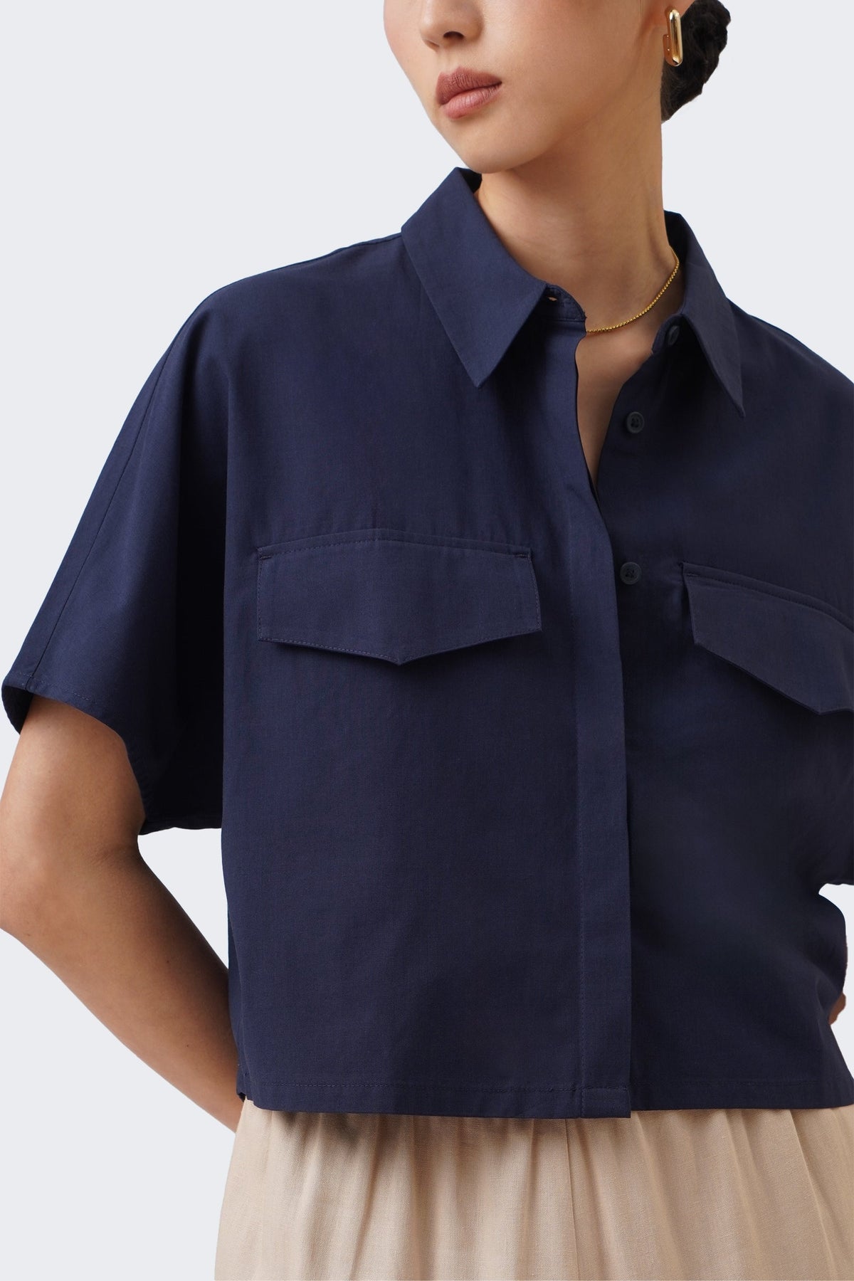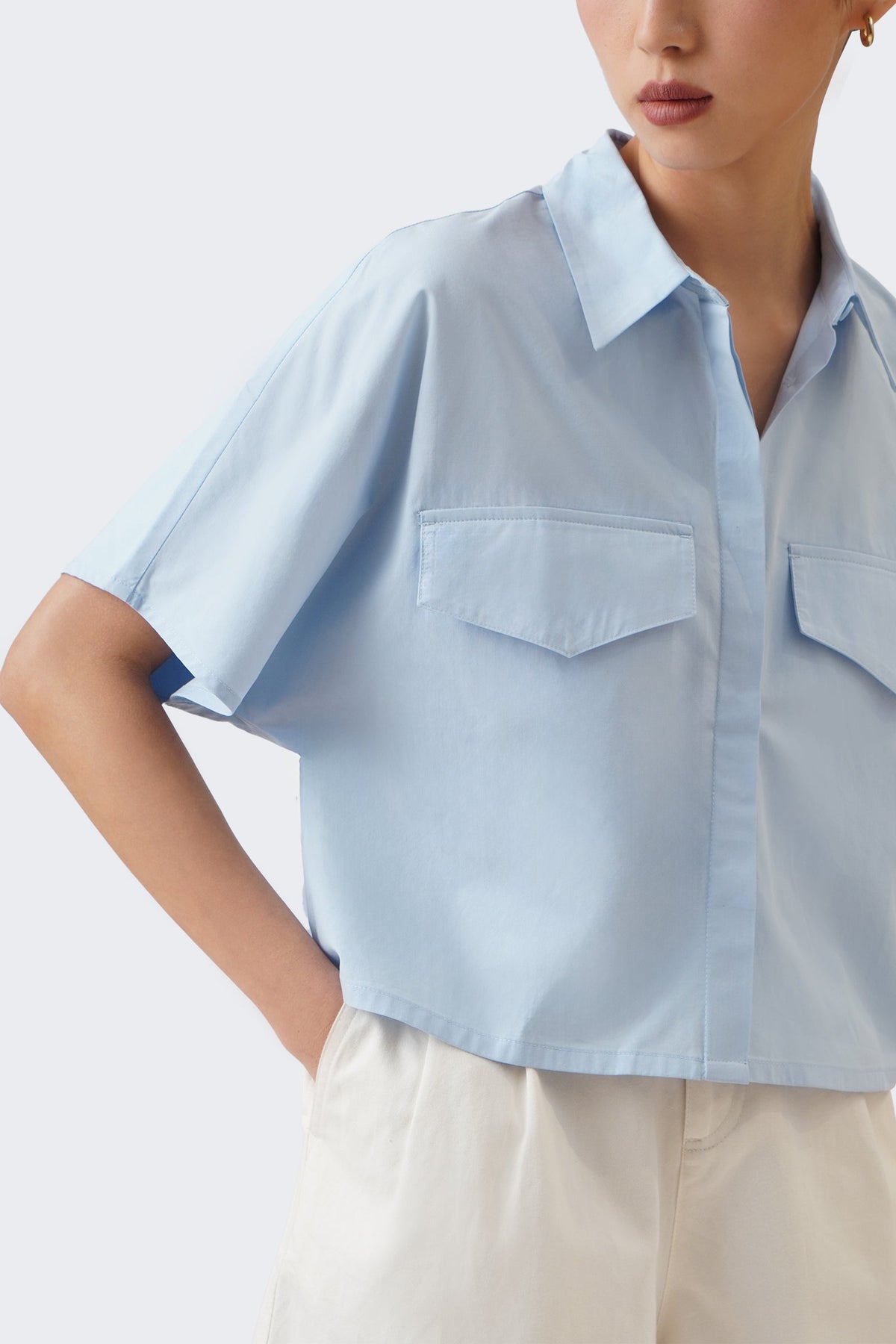 • Design Details: Standard Collar, Hidden Placket, Functional Triangle Flap Pockets and Back Yoke