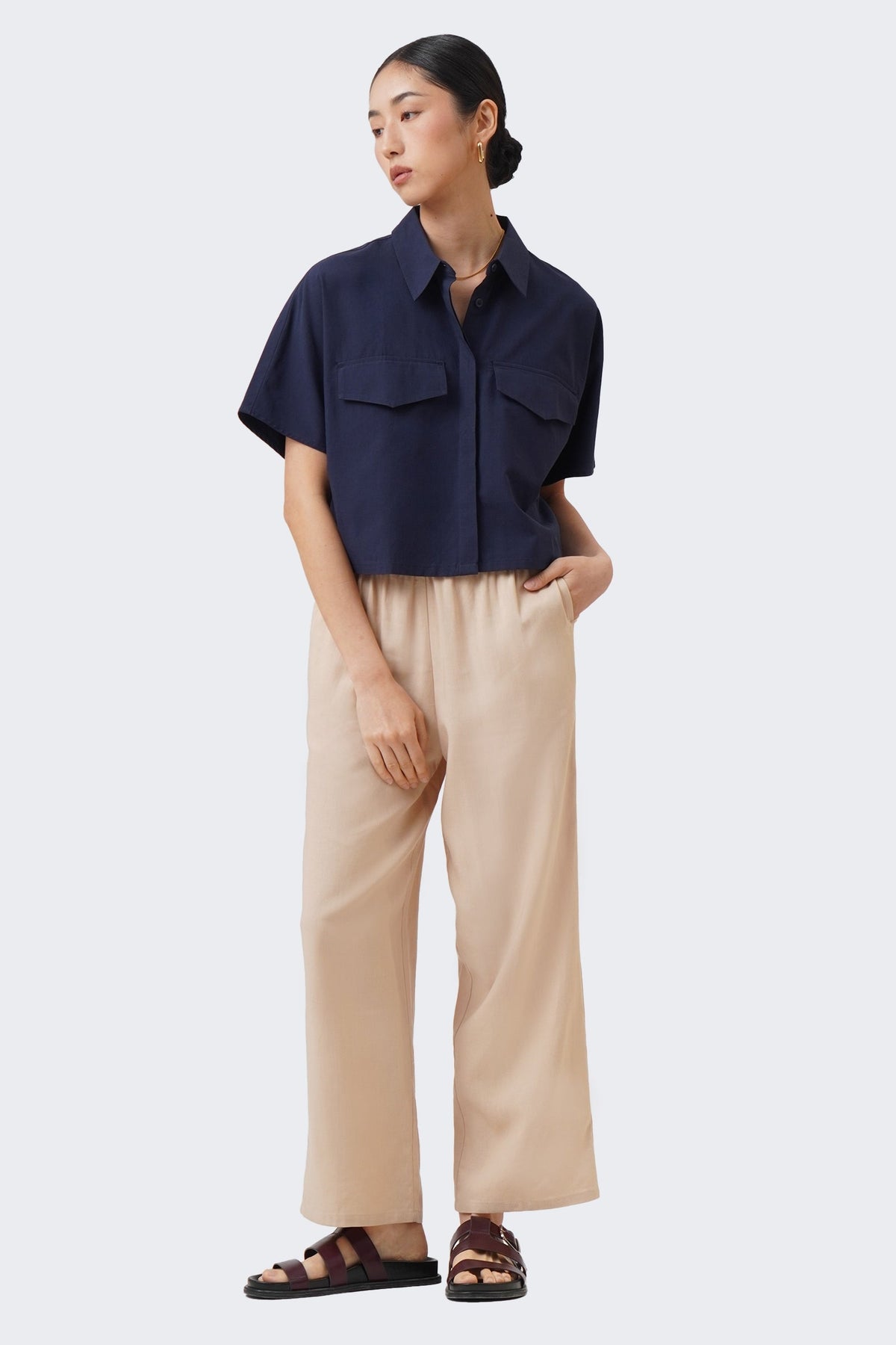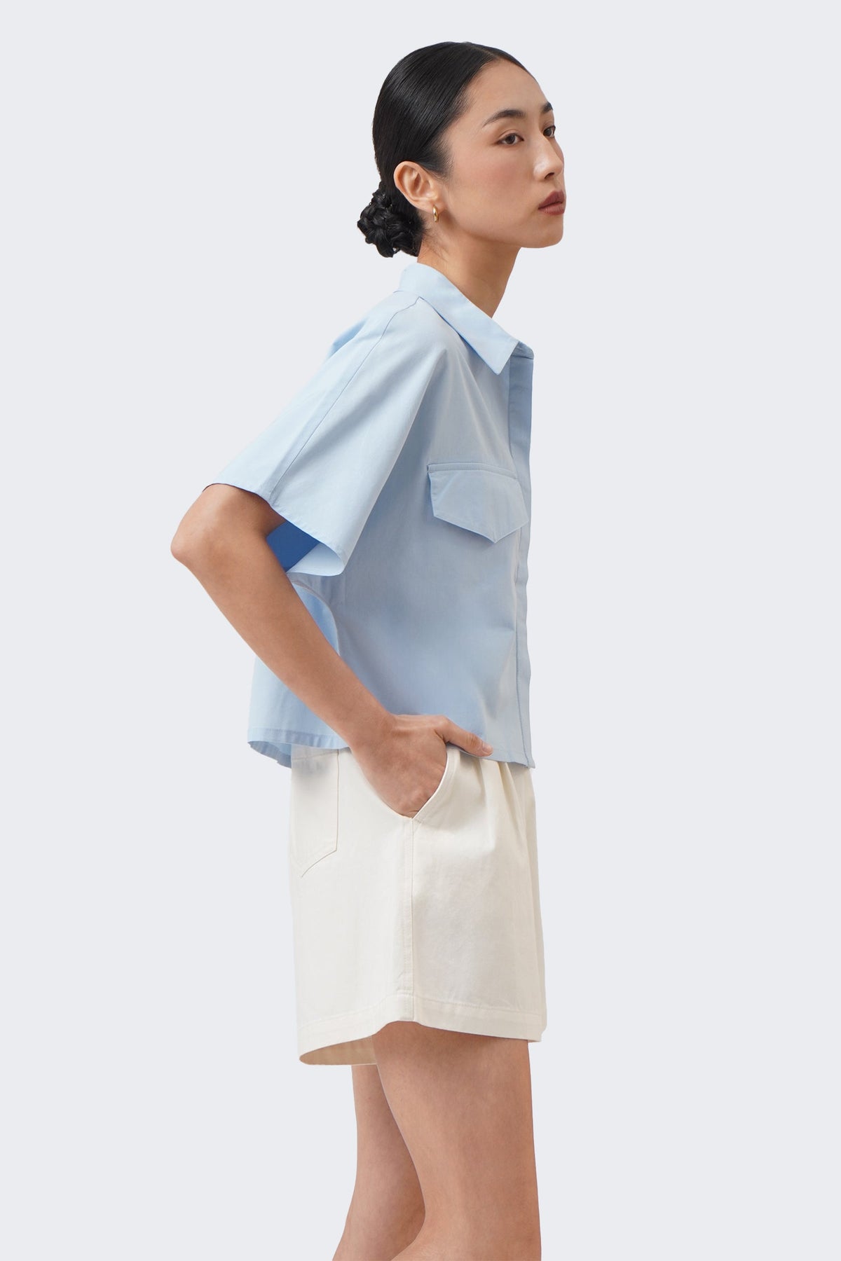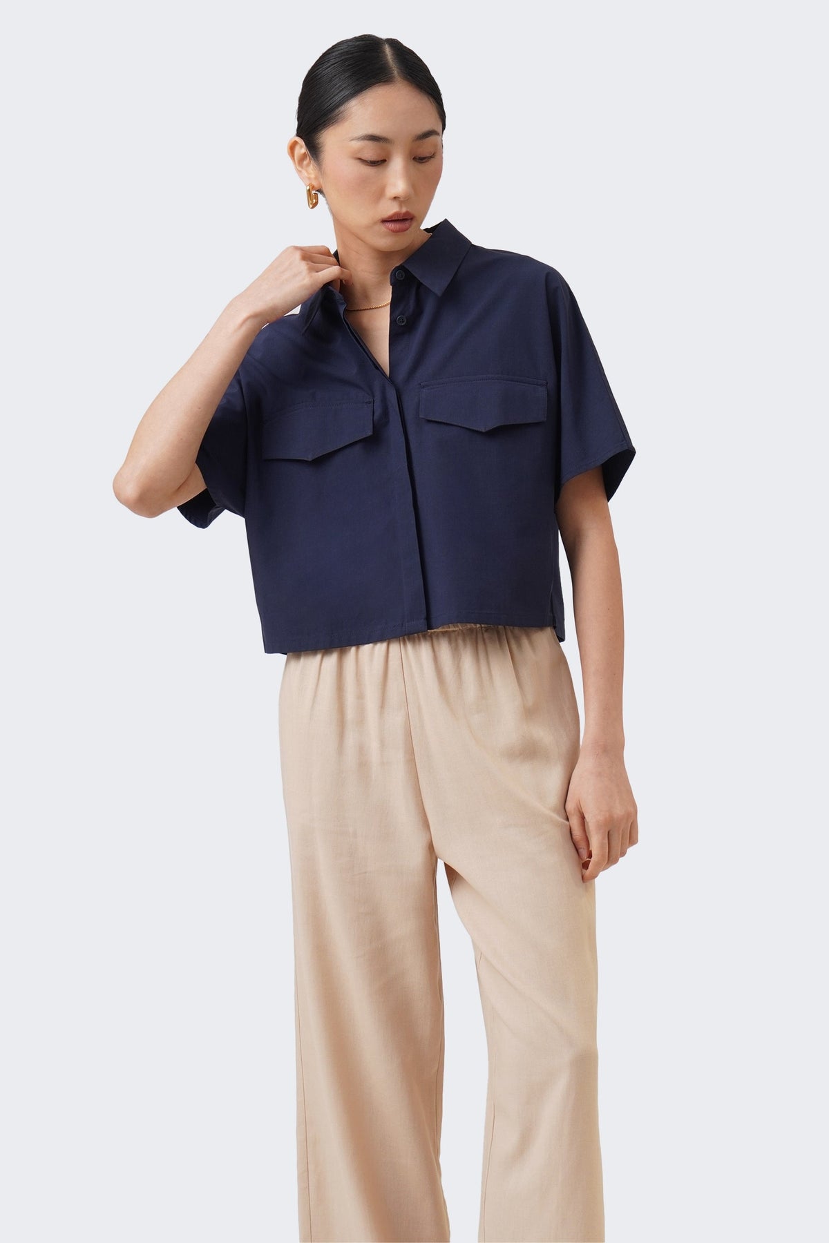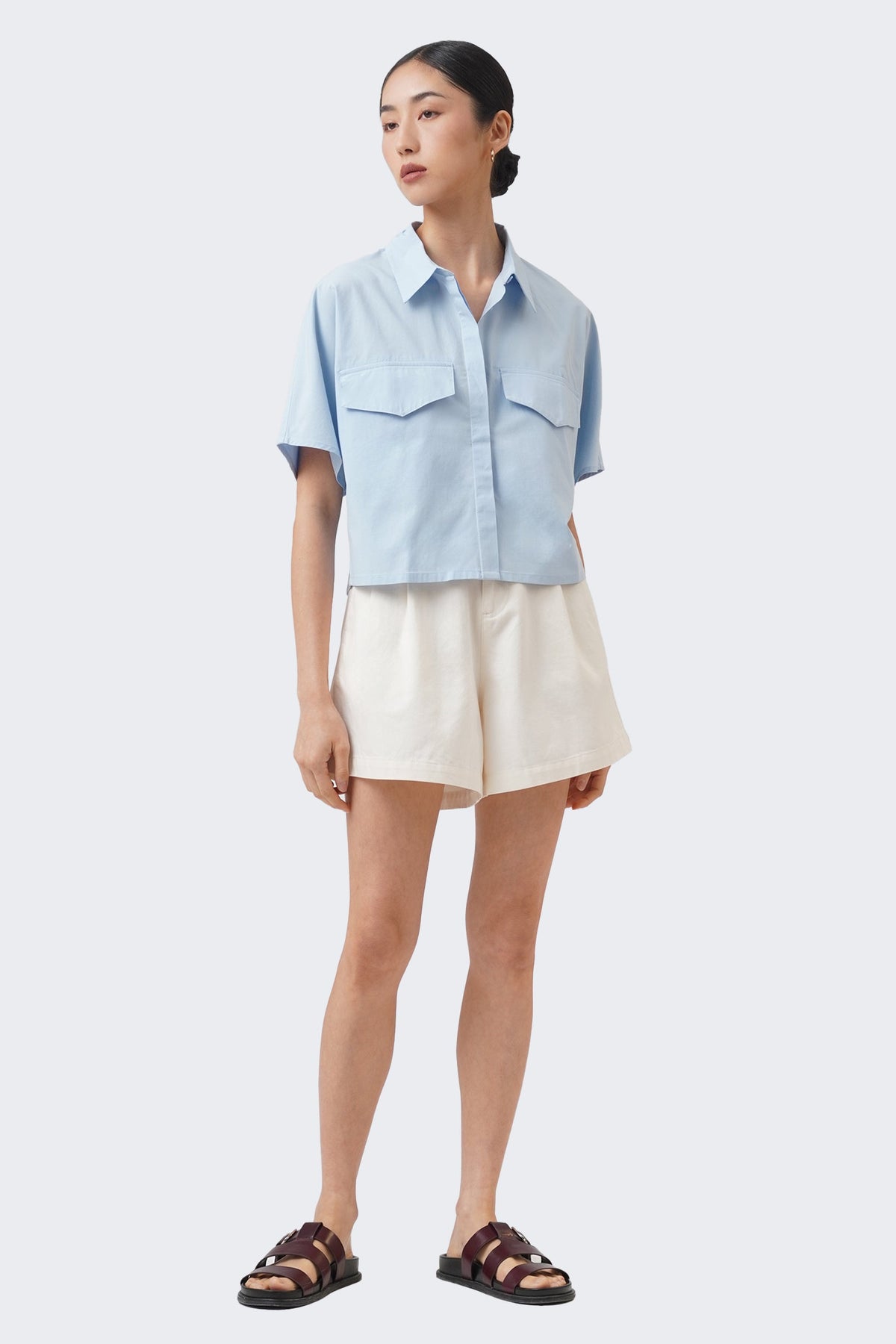 • Design Details: Standard Collar, Hidden Placket, Functional Triangle Flap Pockets and Back Yoke