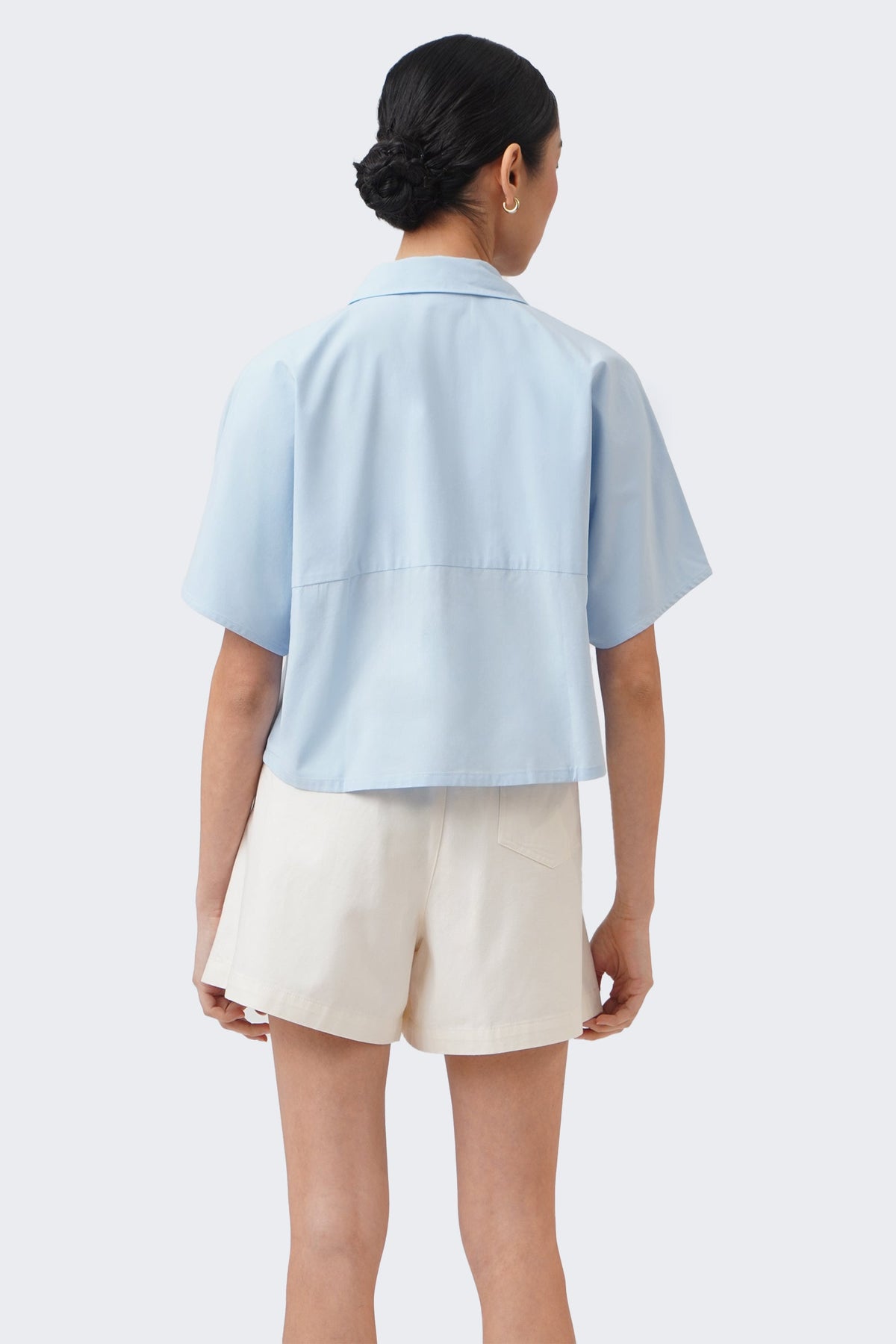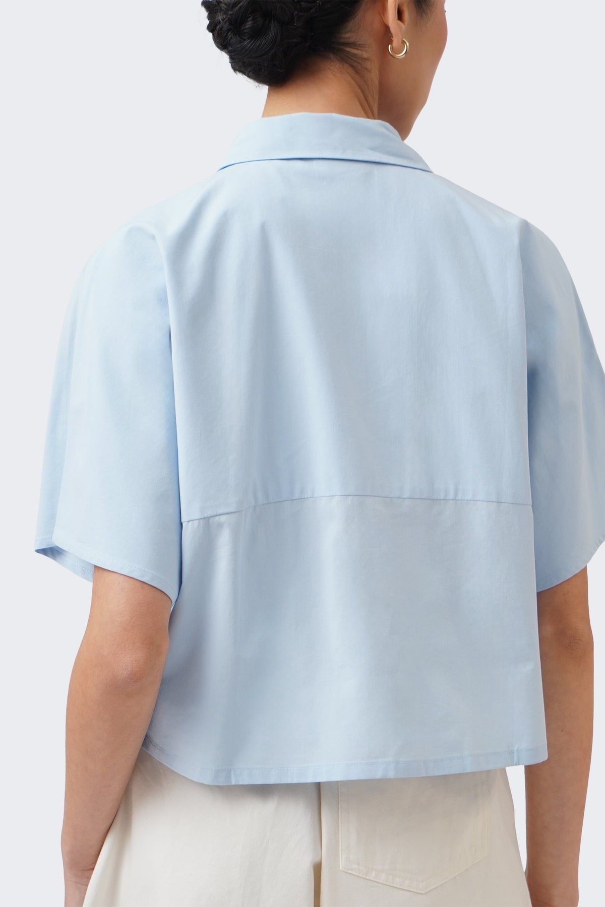 The model is 170cm/5'7" and wears a size Medium for color Pale Blue