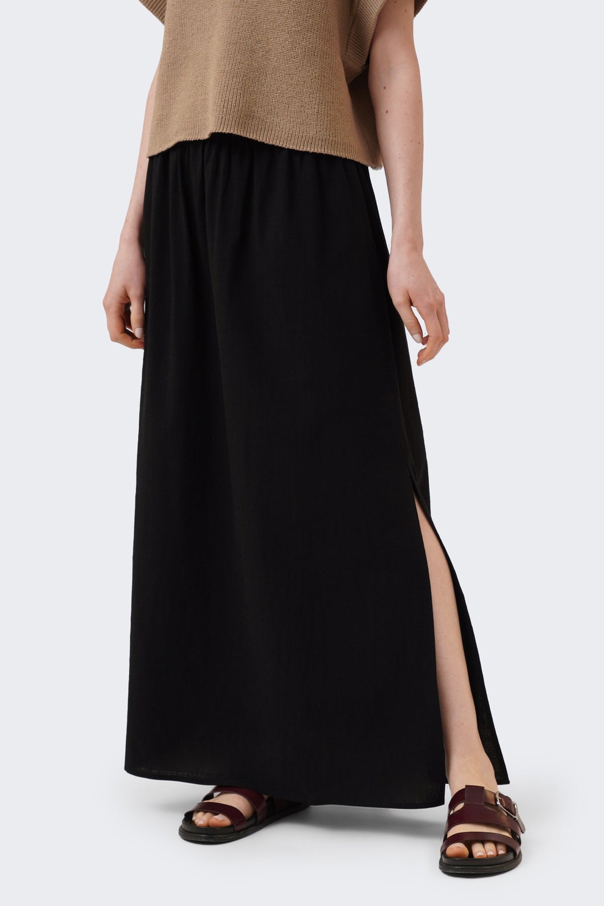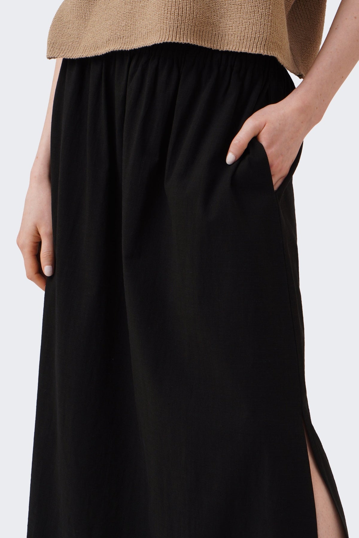 • Design Details: Elastic Waistband, Side Slit Pockets and Side Slits