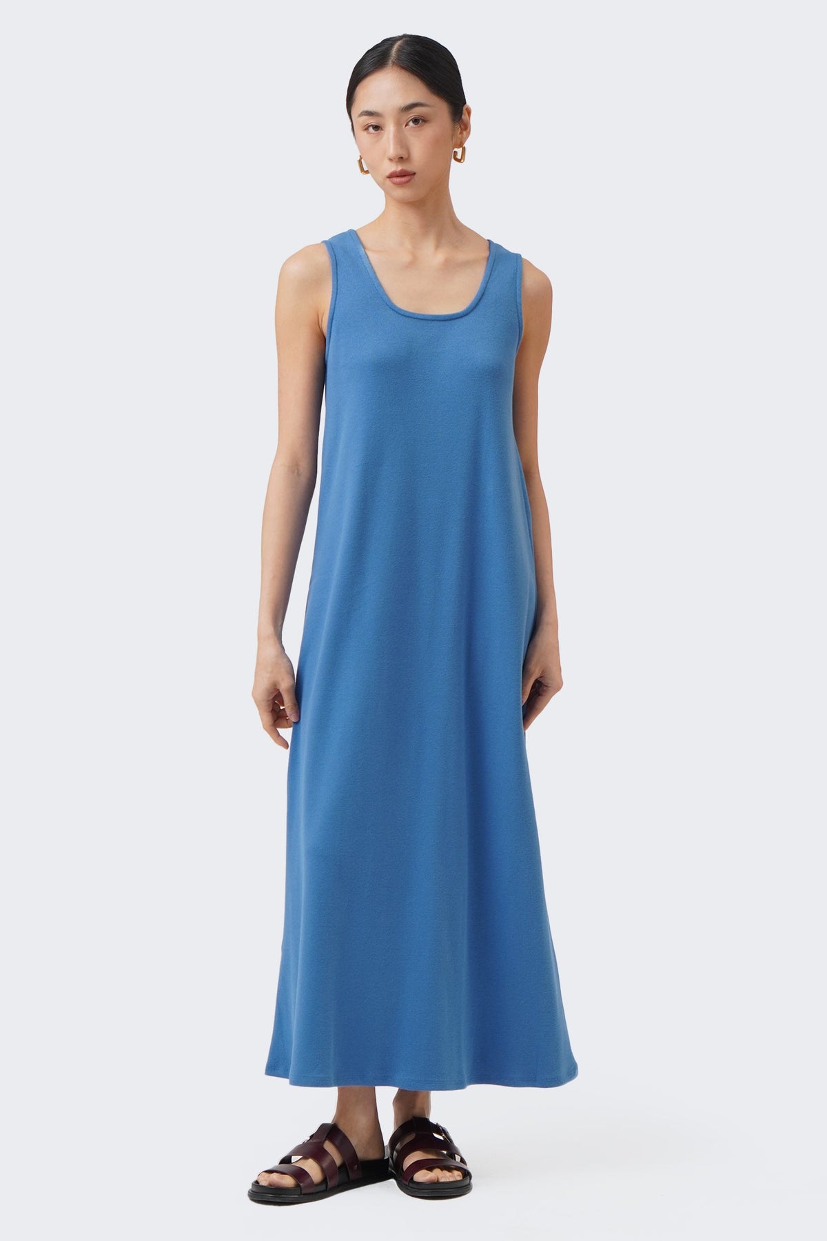 The model is 170cm/5'7" and wears a size Medium for color Aqua Blue
