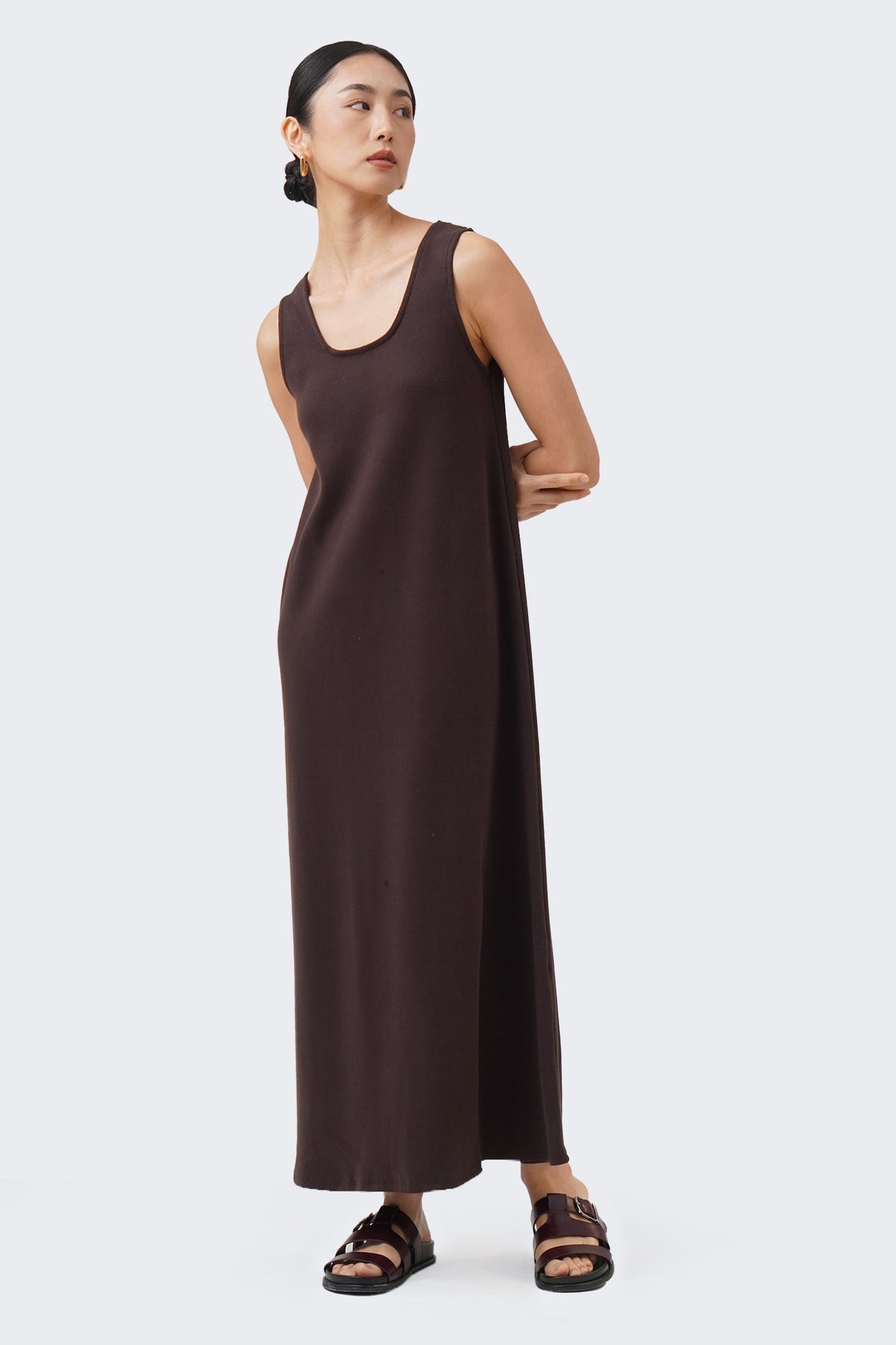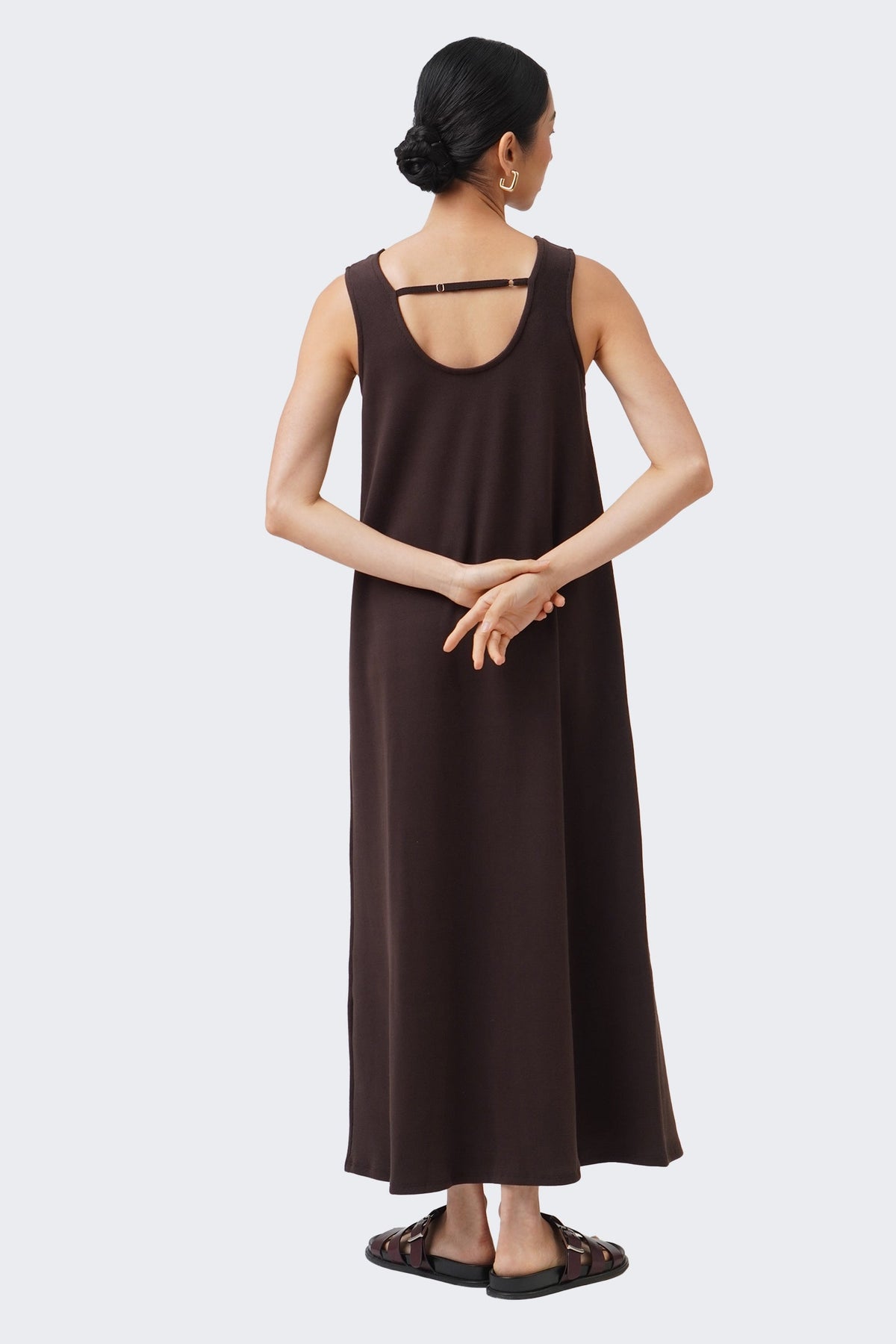 The model is 170cm/5'7" and wears a size Medium for color Mahogany
