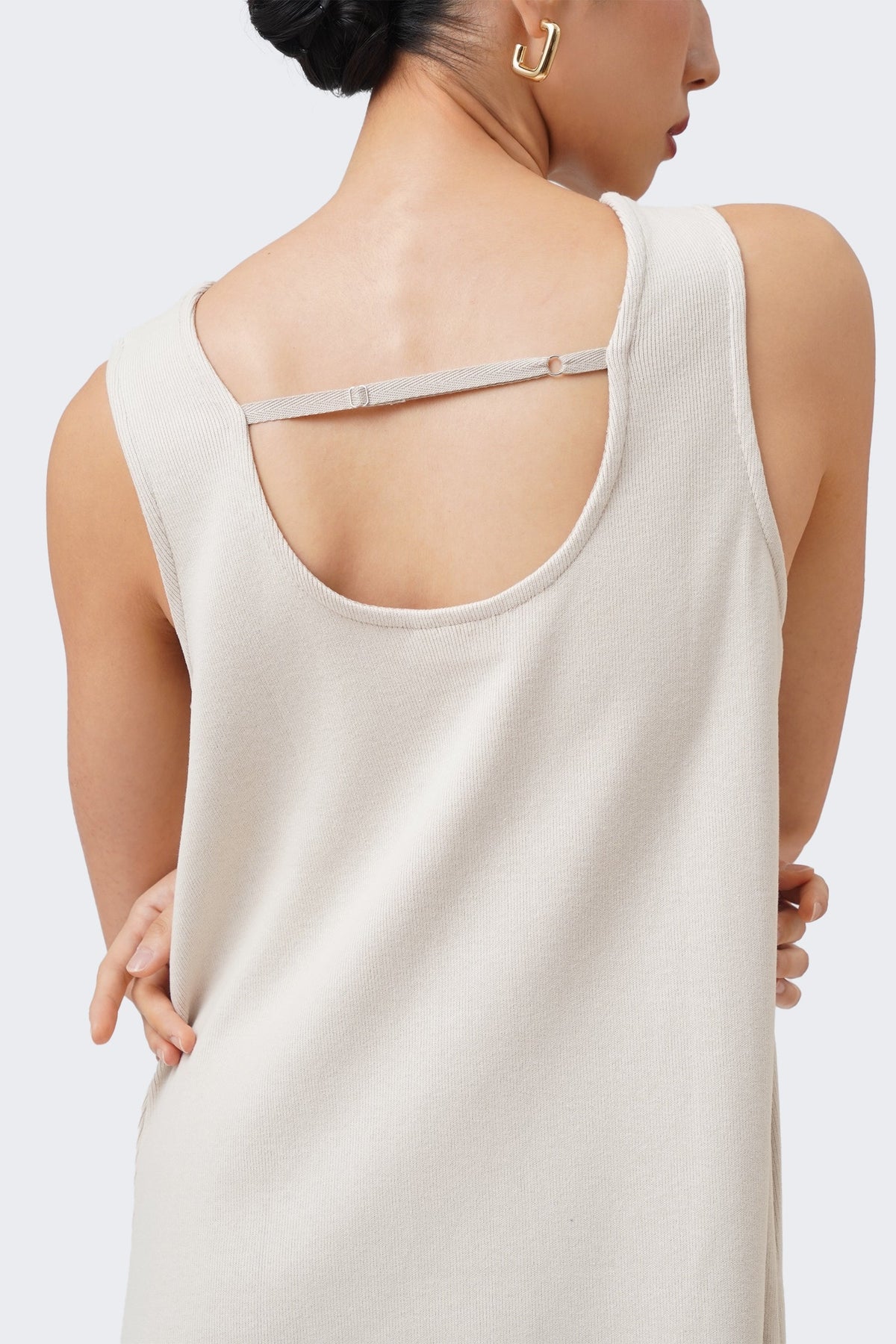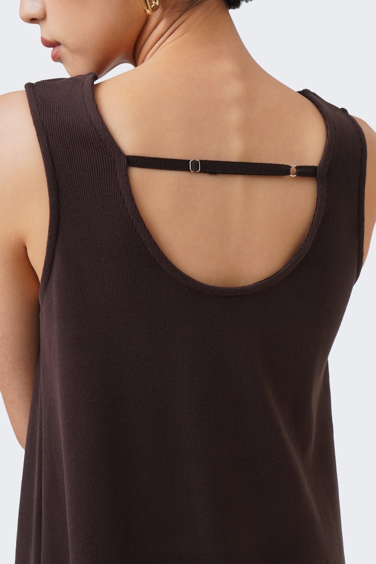 • Design Details: Adjustable Back Strap and Front and Back Scoop Neck