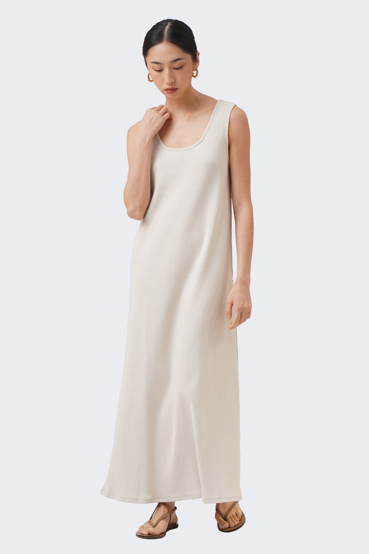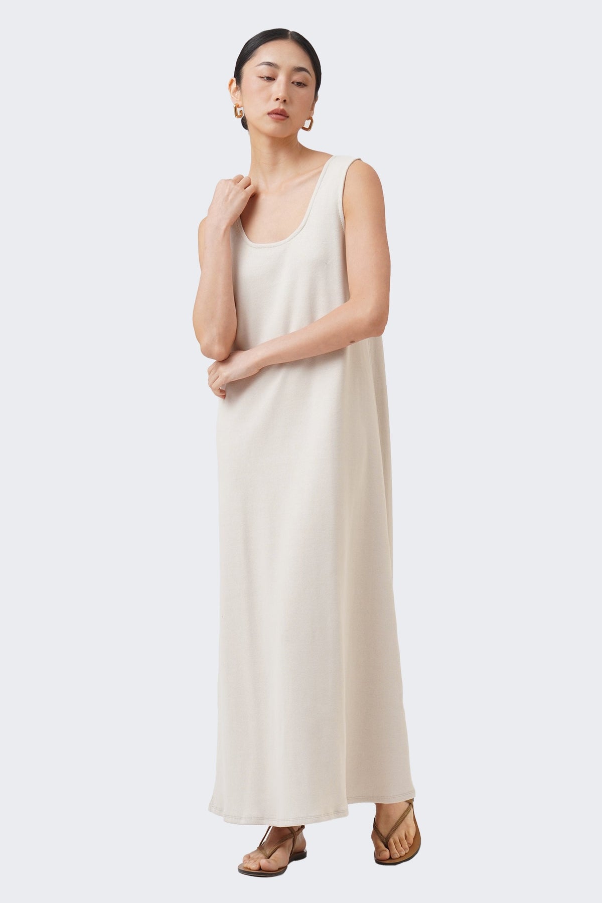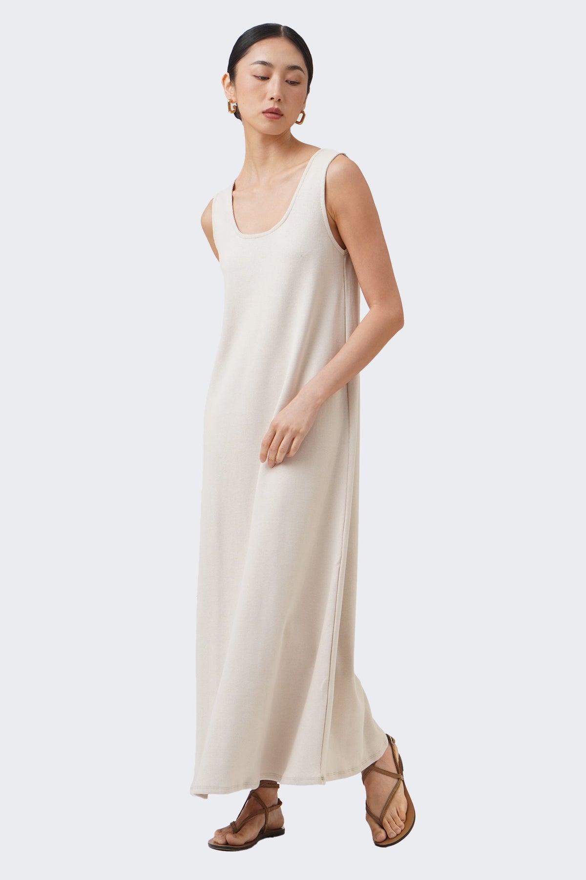 The model is 170cm/5'7" and wears a size Medium for color Oatmilk
