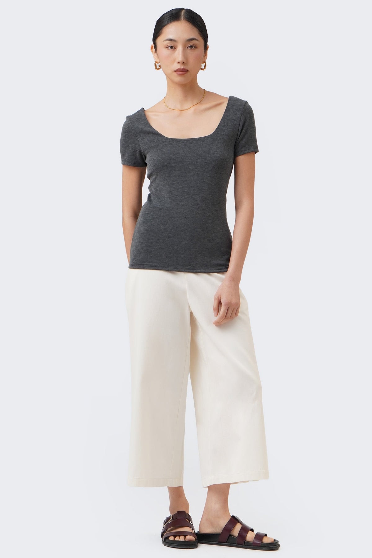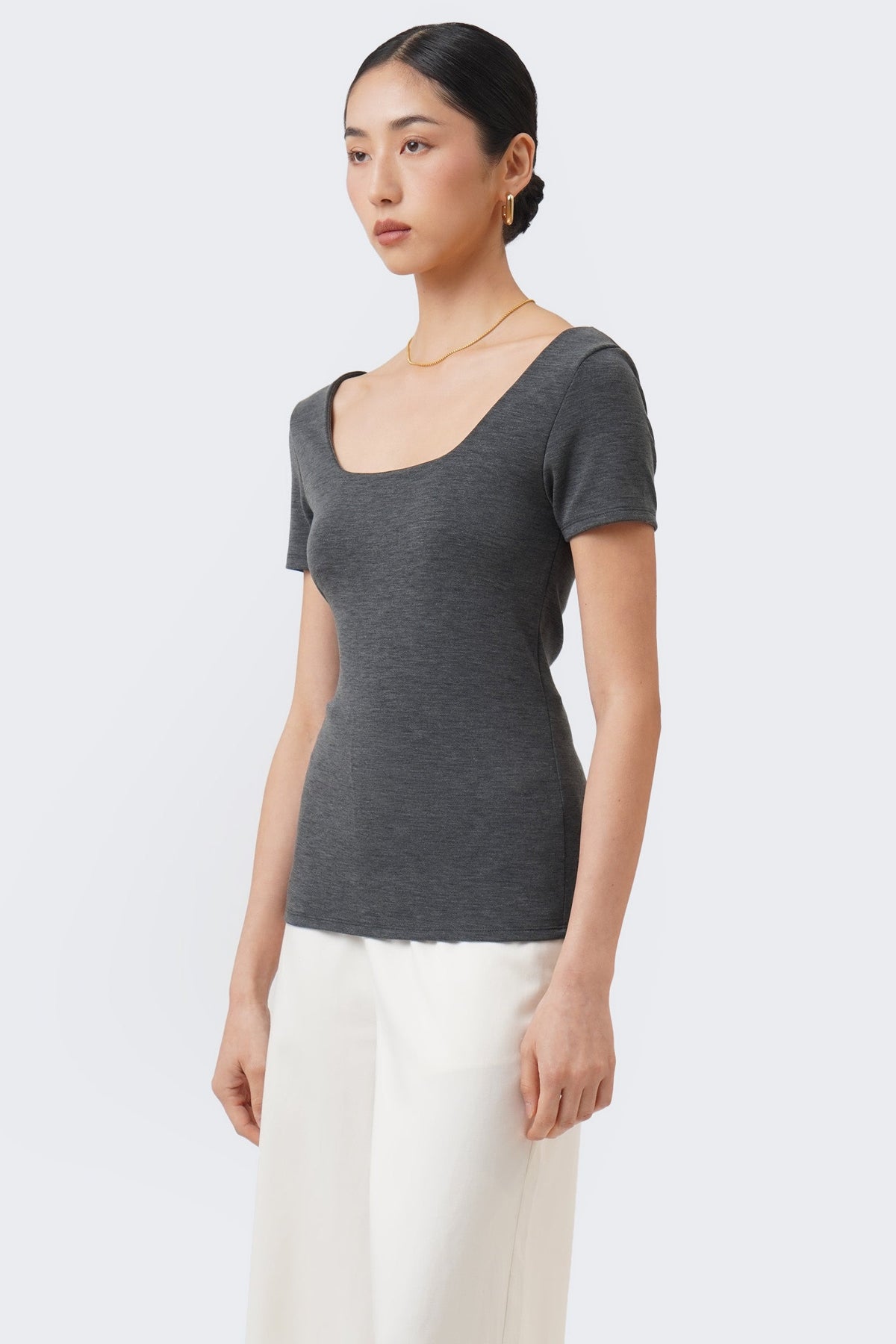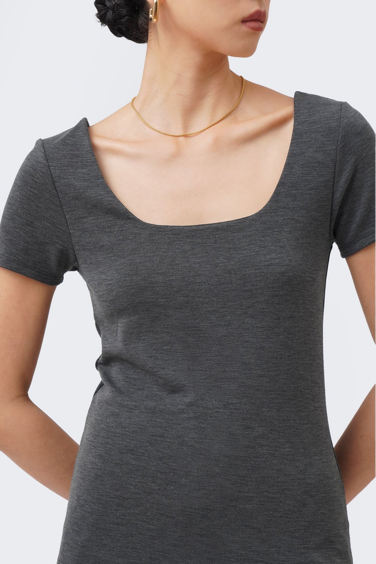 The model is 170cm/5'7" and wears a size Medium for color Dark Heather Gray