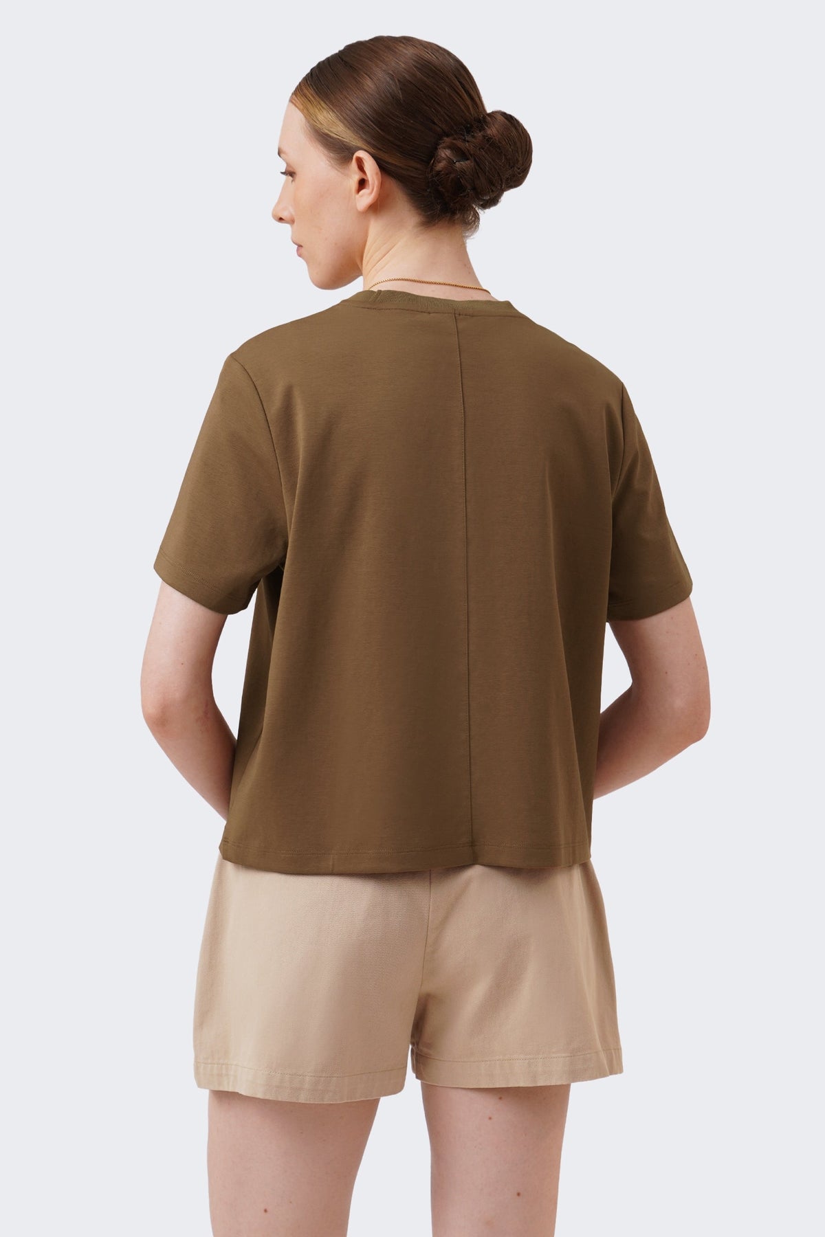 • Design Details: Flat Knit Neckband, Shoulder Forward, Set in Sleeves and Center Back Seam