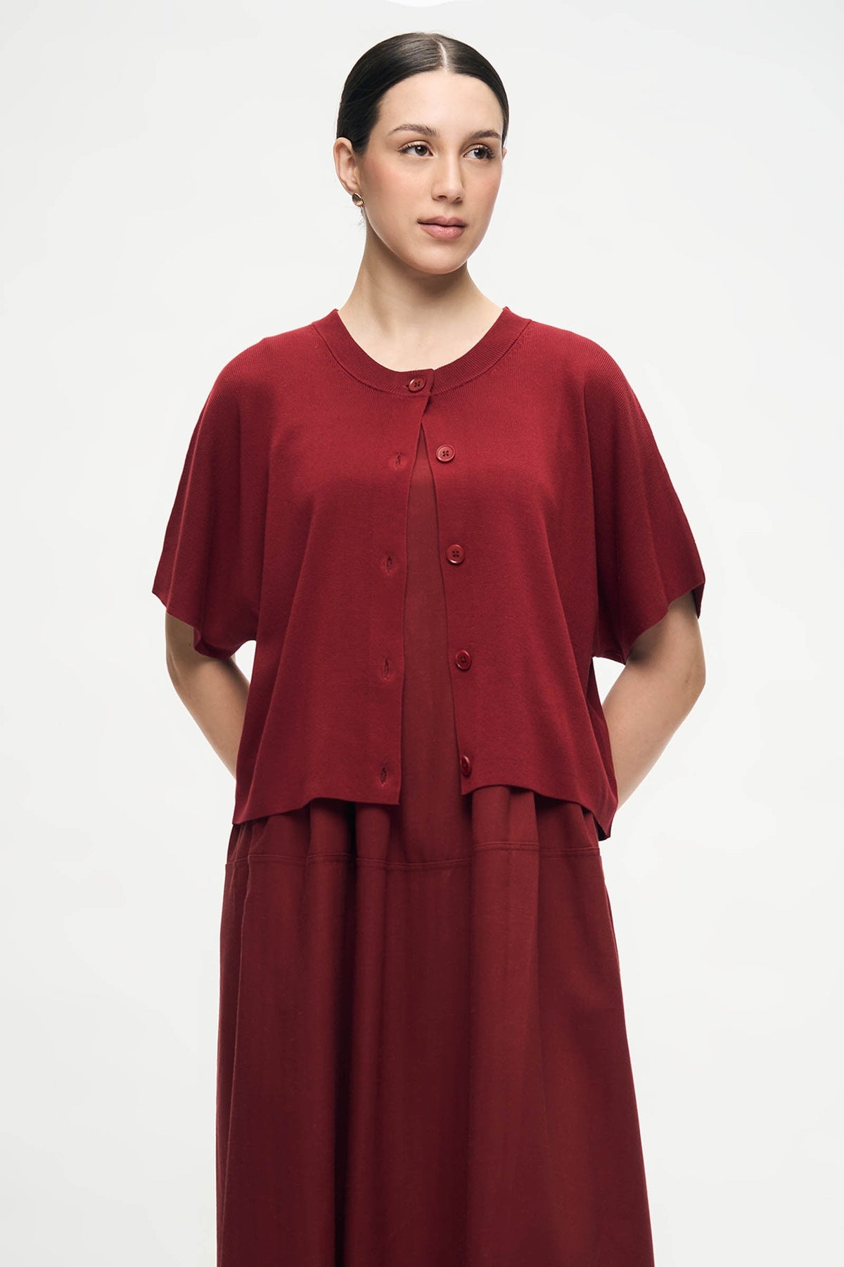The model is 171cm/5'7" and wears a size Medium (wearing Brick Red)