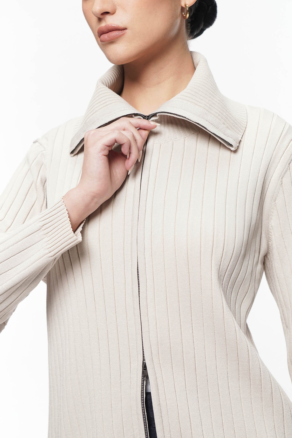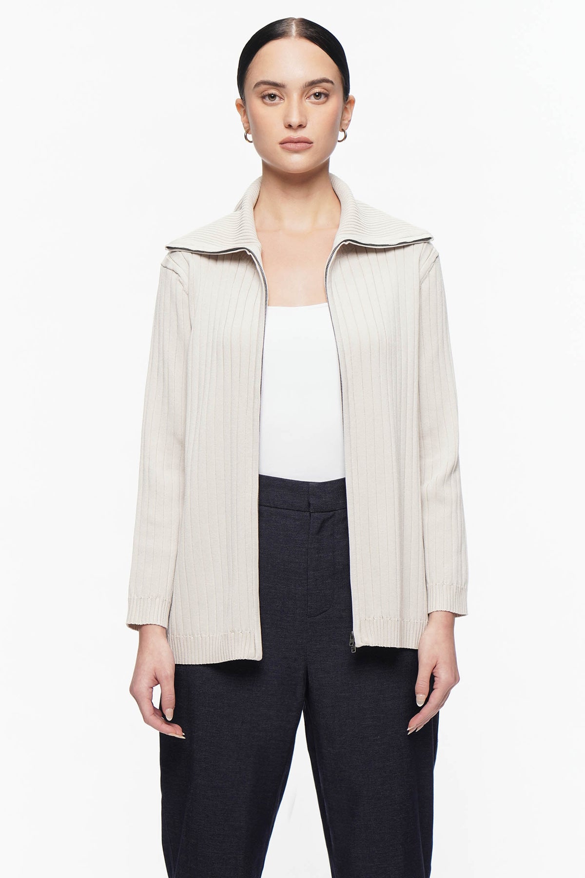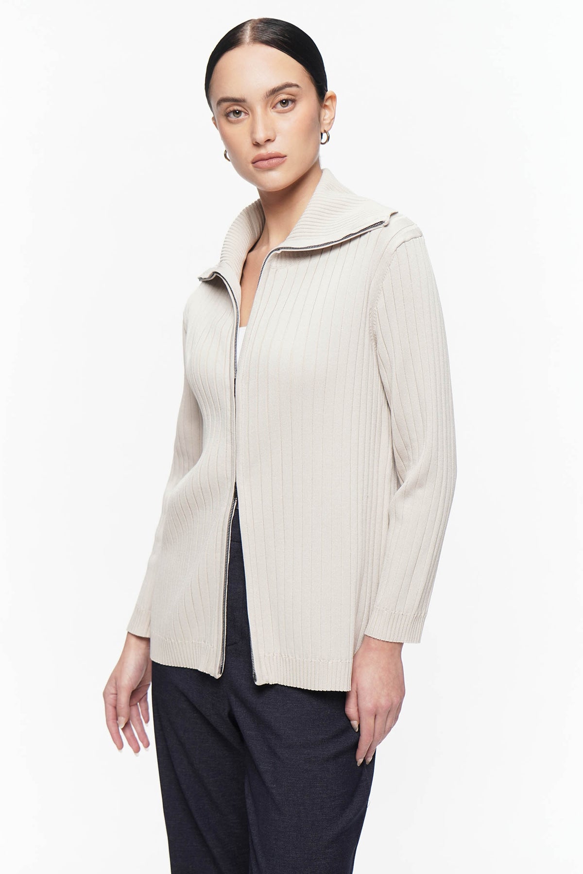 • Design Details: High Neck, Double Ended Zipper and Long Sleeves