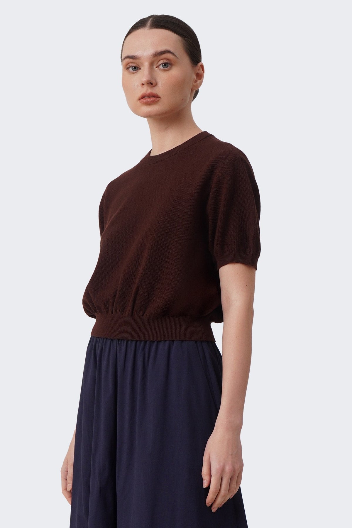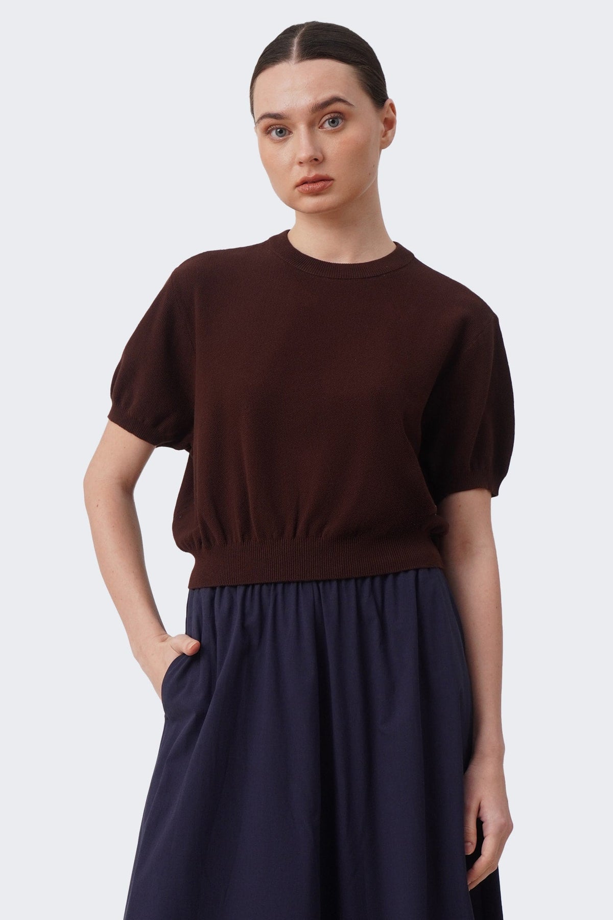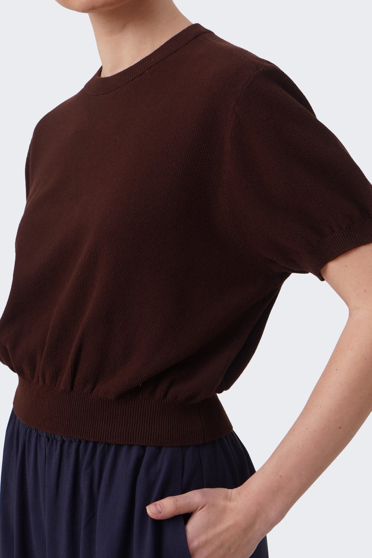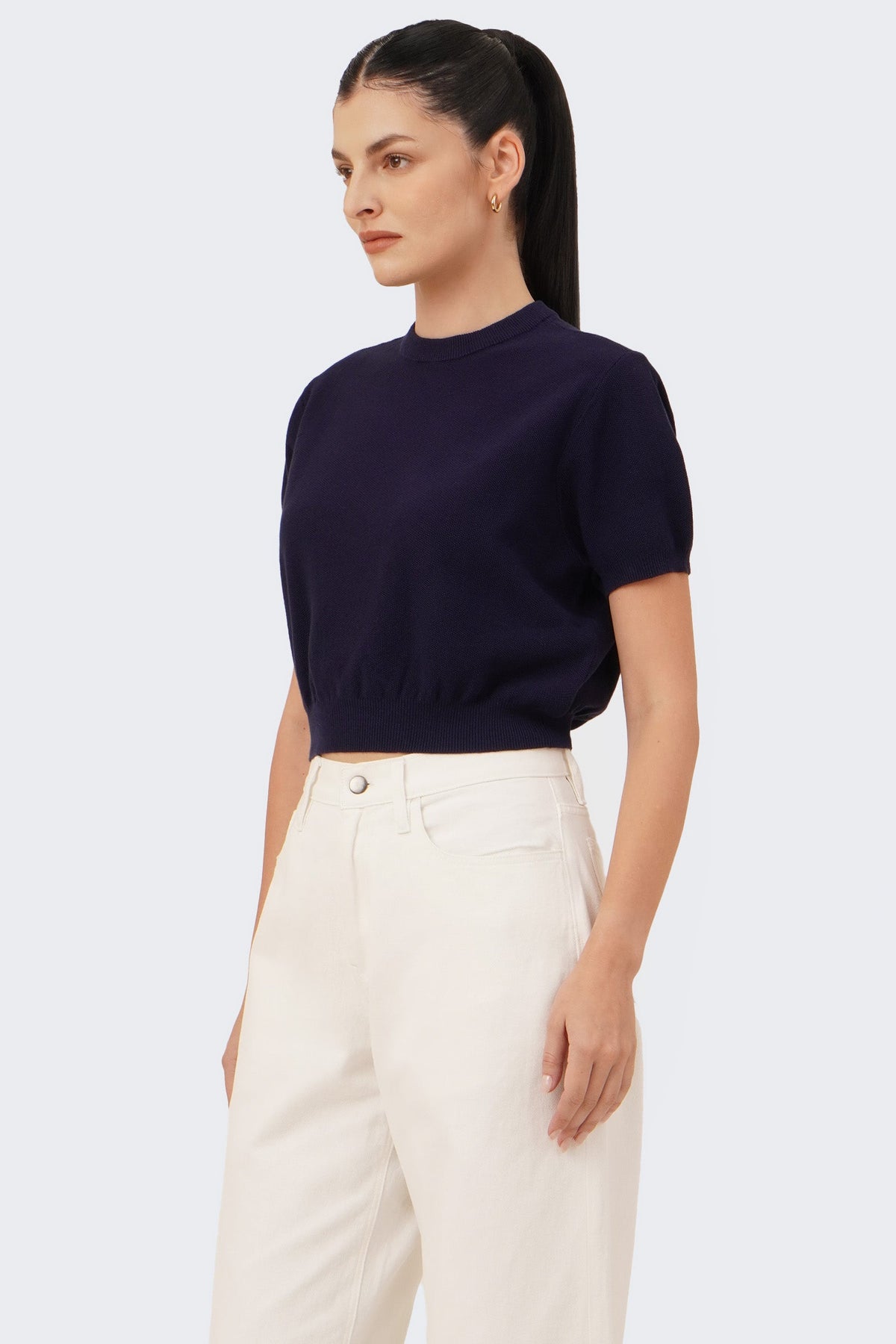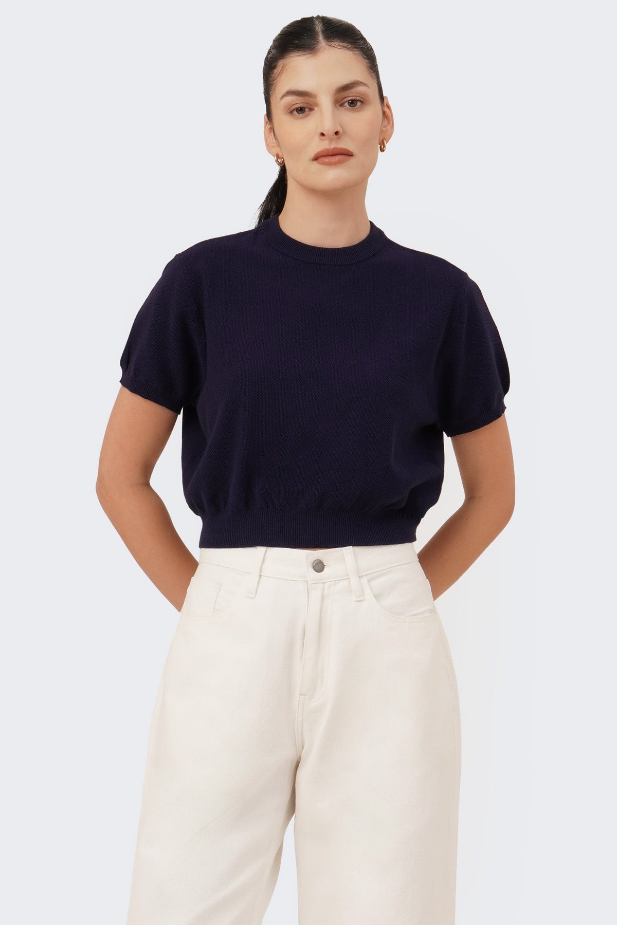 Women's Cropped Knit T-Shirt with Hem Band