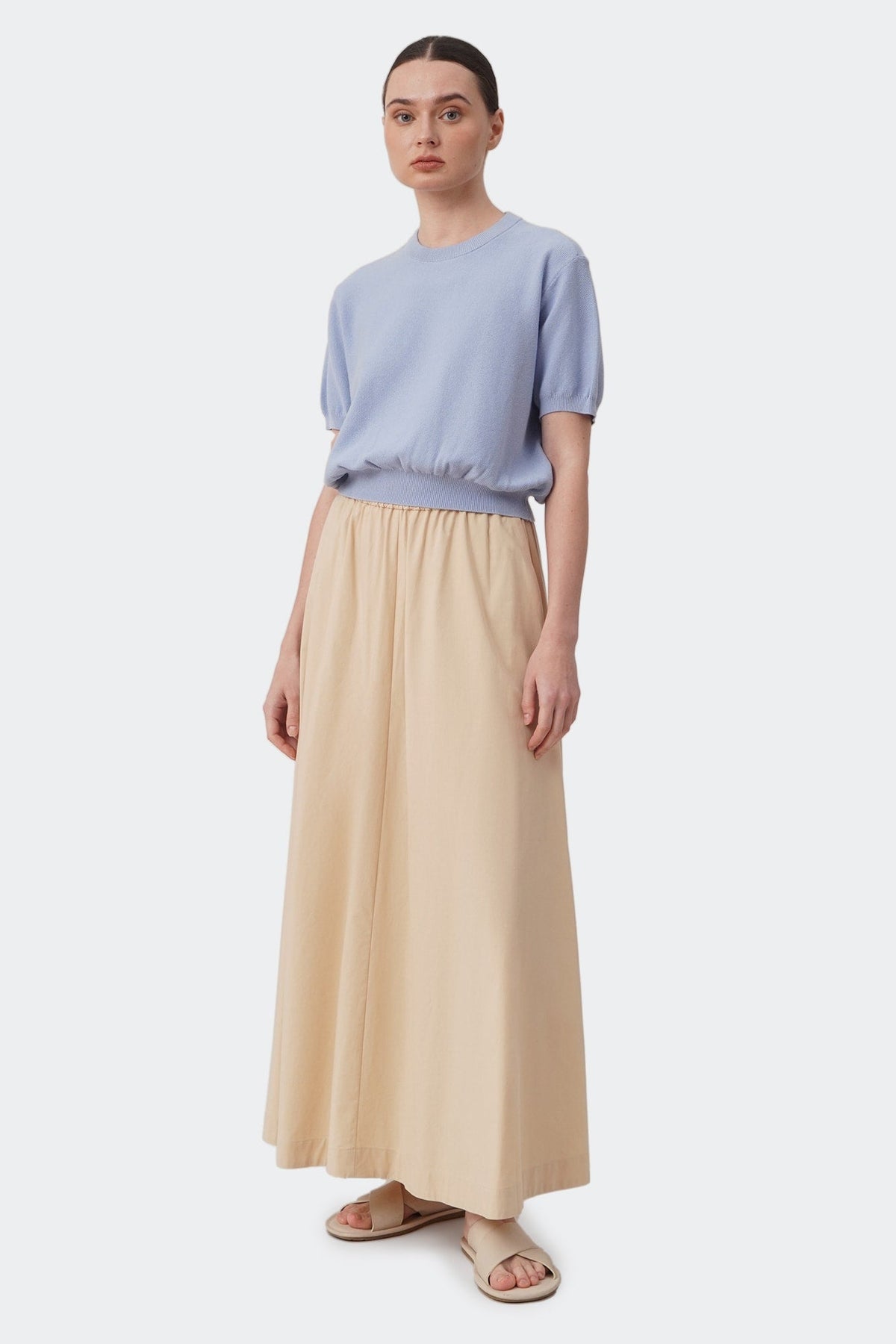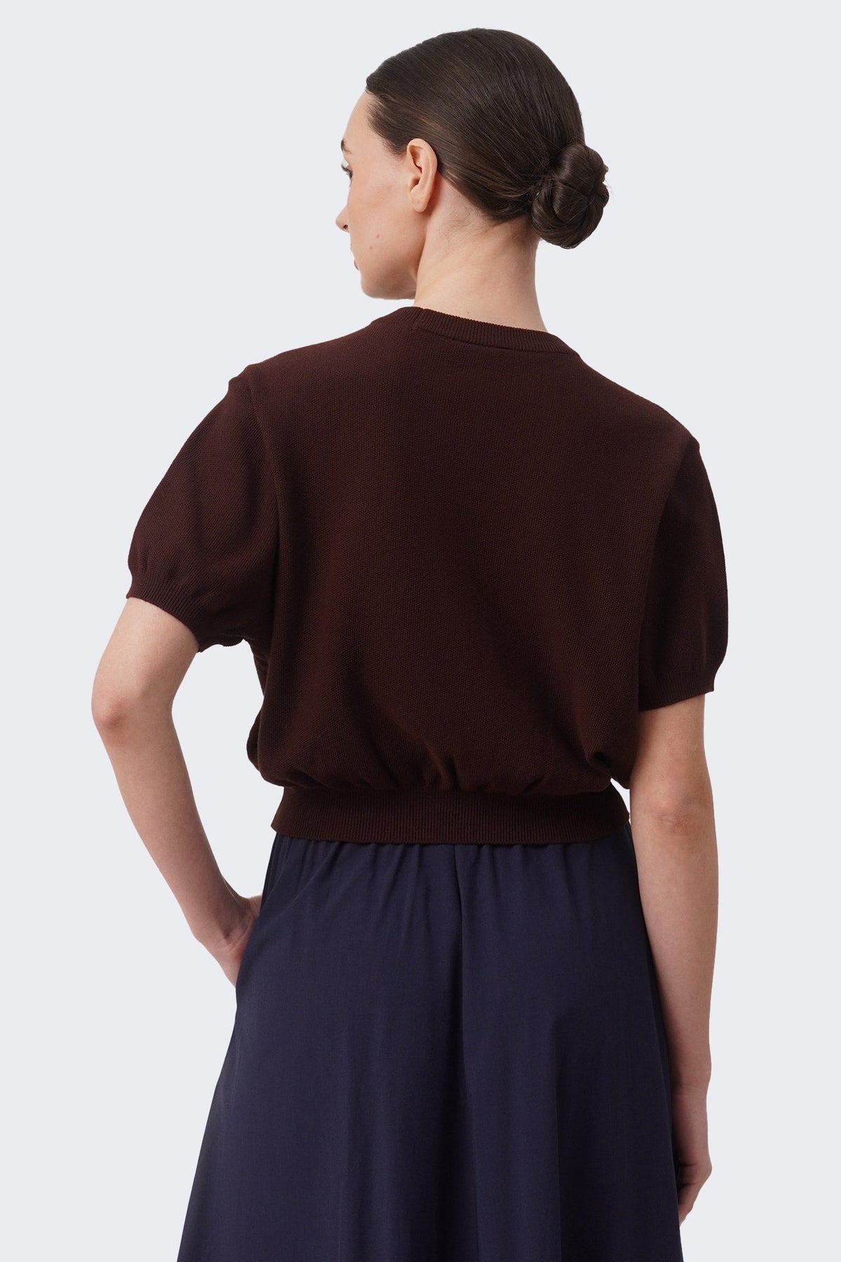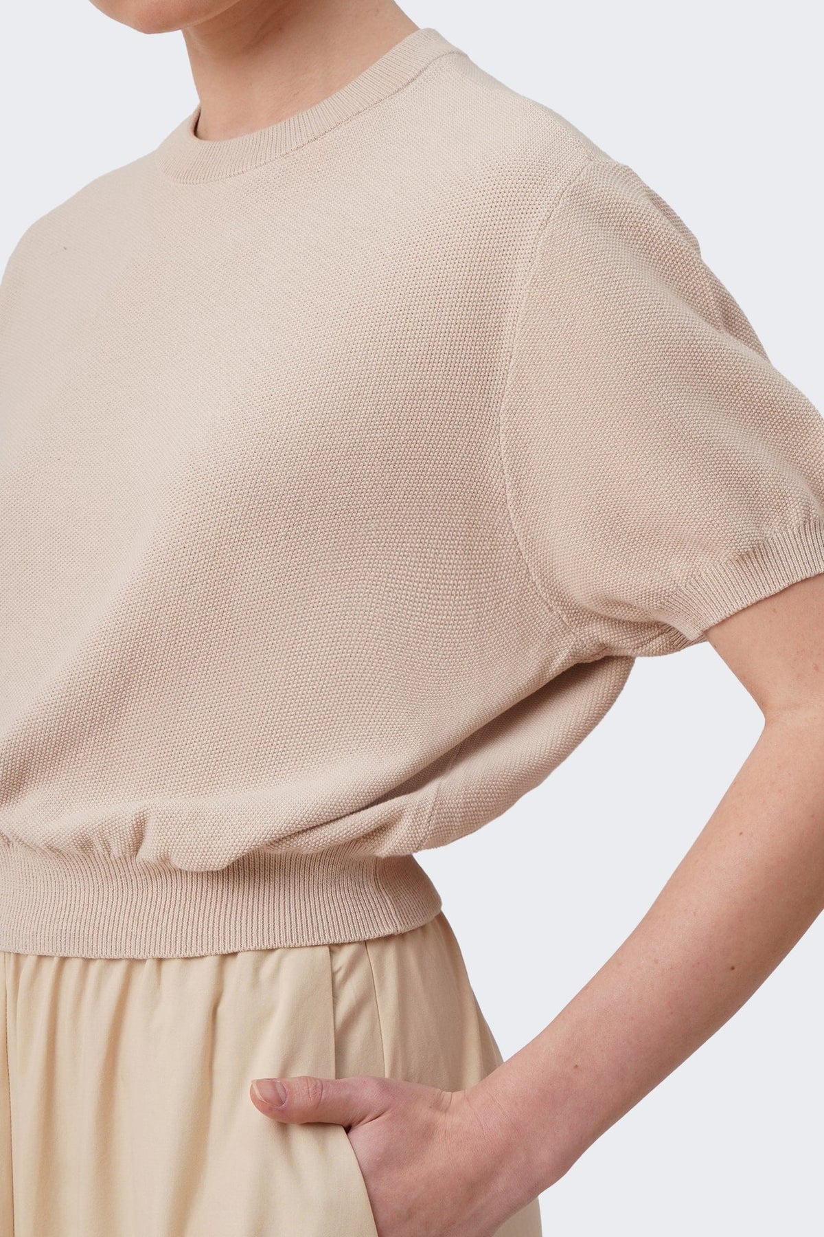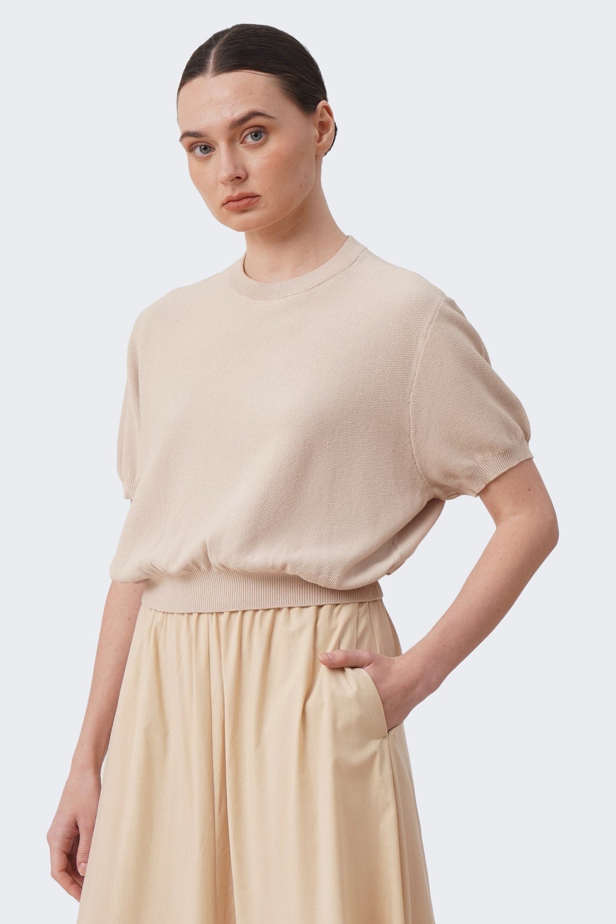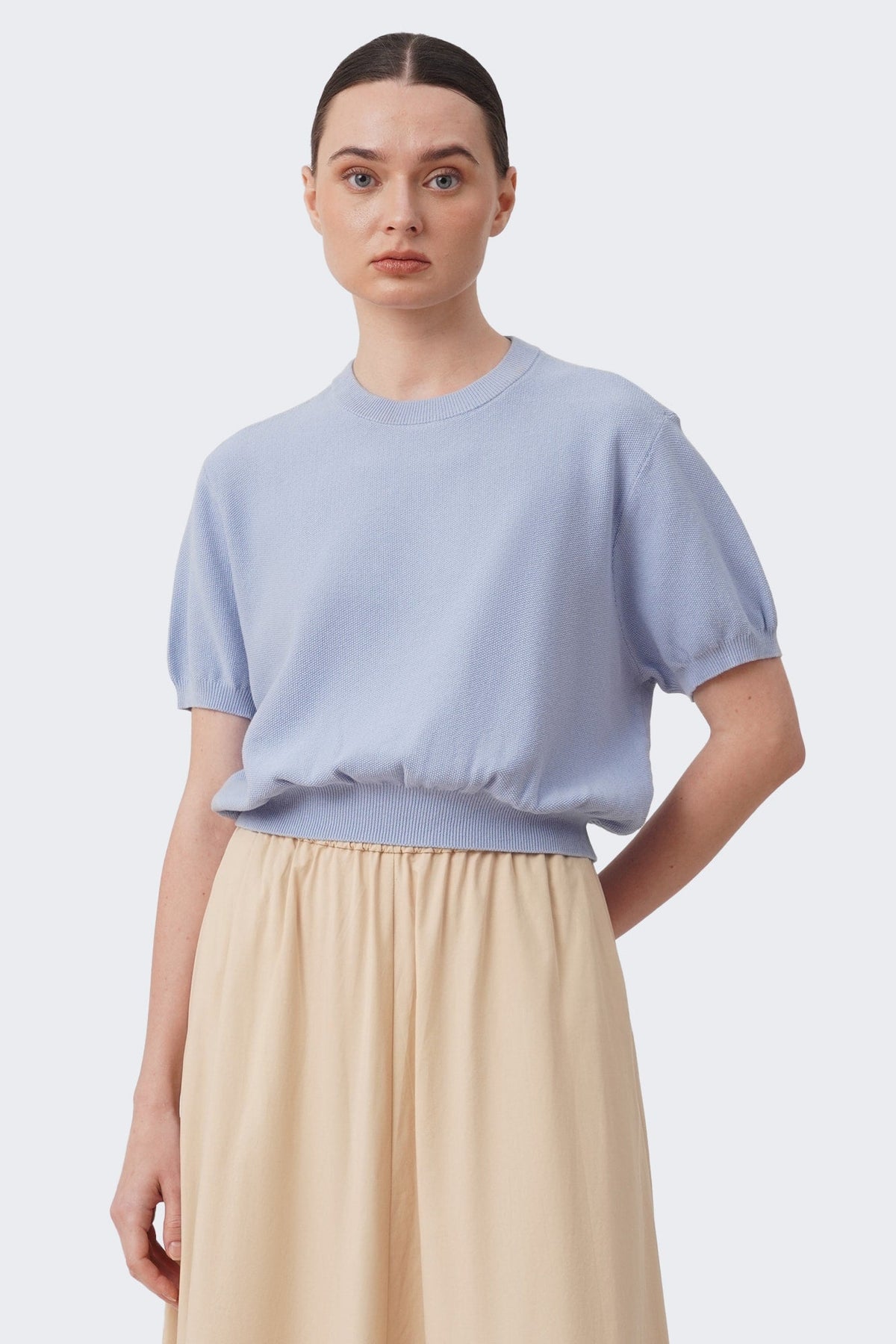 Women's Cropped Knit T-Shirt with Hem Band