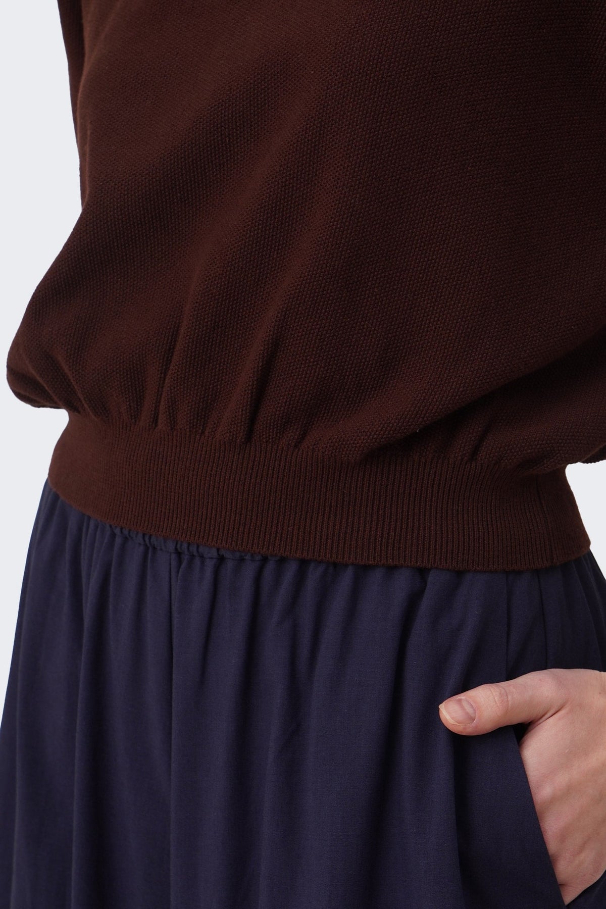 The model is 171cm/5'6" and wears a size Medium (wearing Mahogany, Oatmilk, Pale Blue)