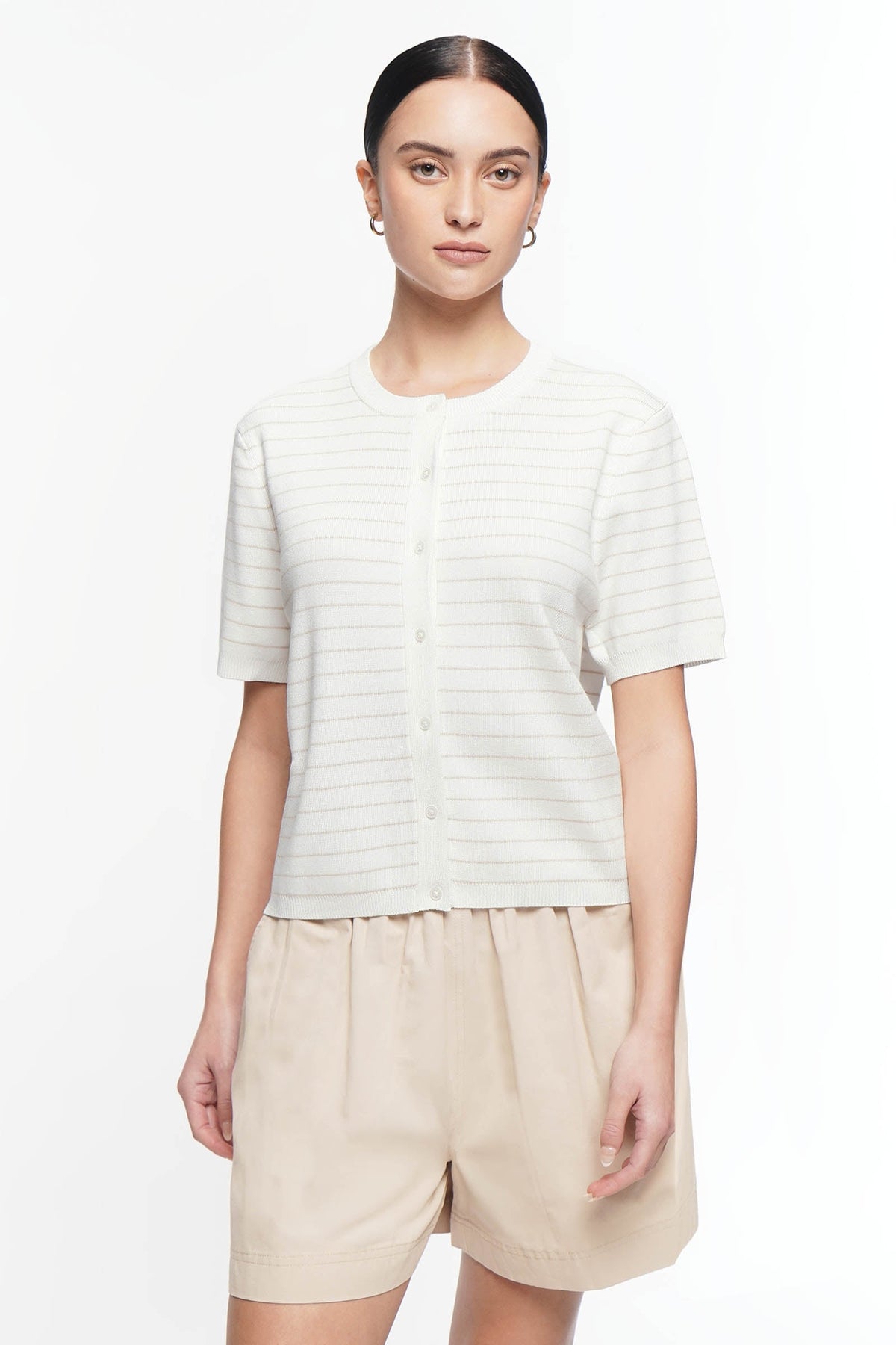• Design Details: Ribbed Neckband, Ribbed Sleeve Band, Ribbed Hem Band, Center Front Placket, Buttons, Stripes