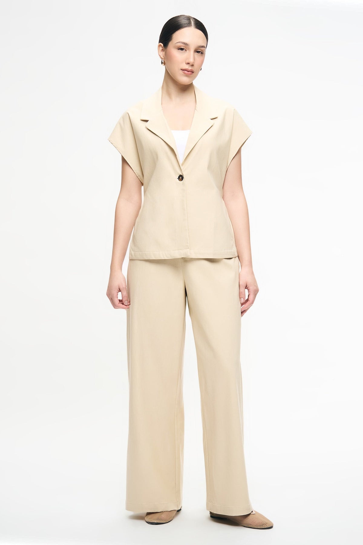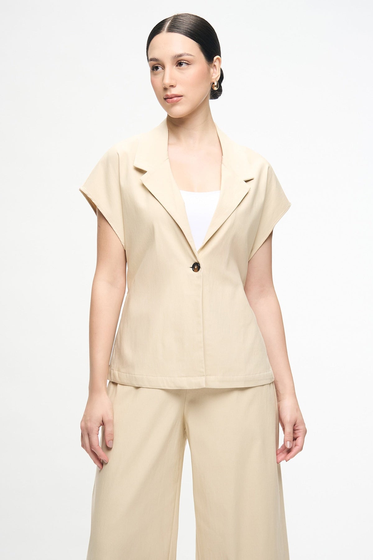 • Fit: Relaxed Cropped Short-Sleeved Blazed