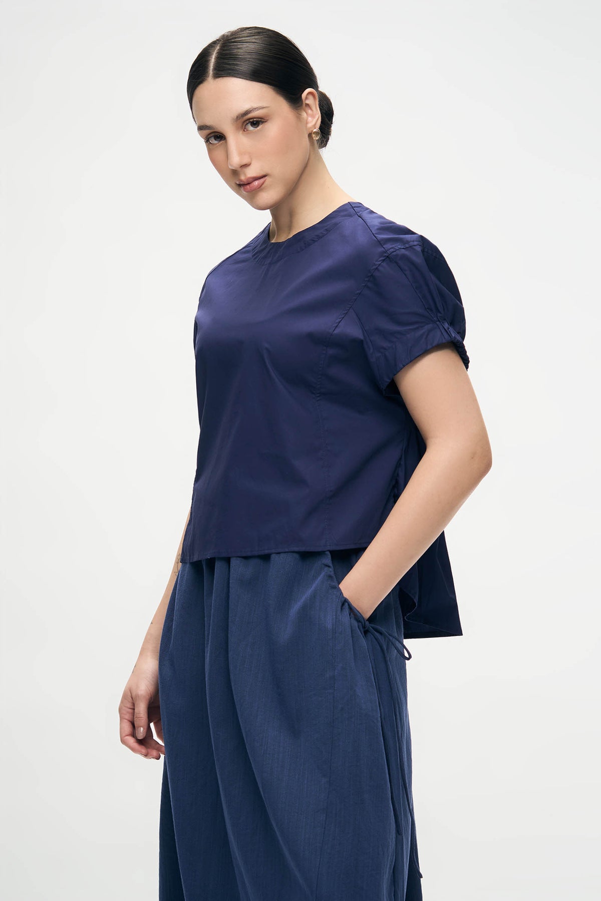 Women's Cropped Half Puff Sleeve Garter Back Blouse