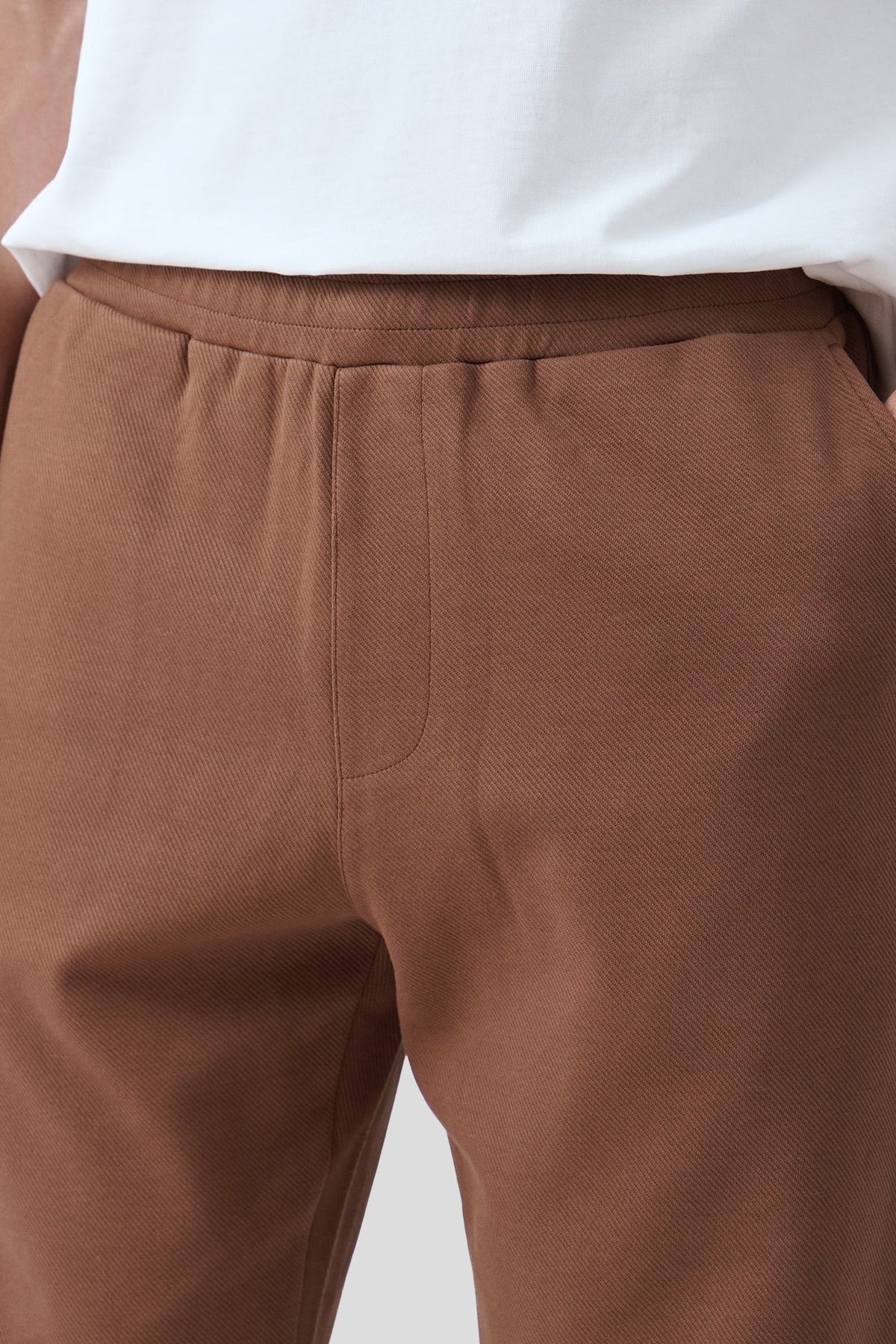 • Design Details: Garterized Waist Band, Faux J-Stitch, Hidden Drawstring, Front Slant Pockets, Back Patch Pockets