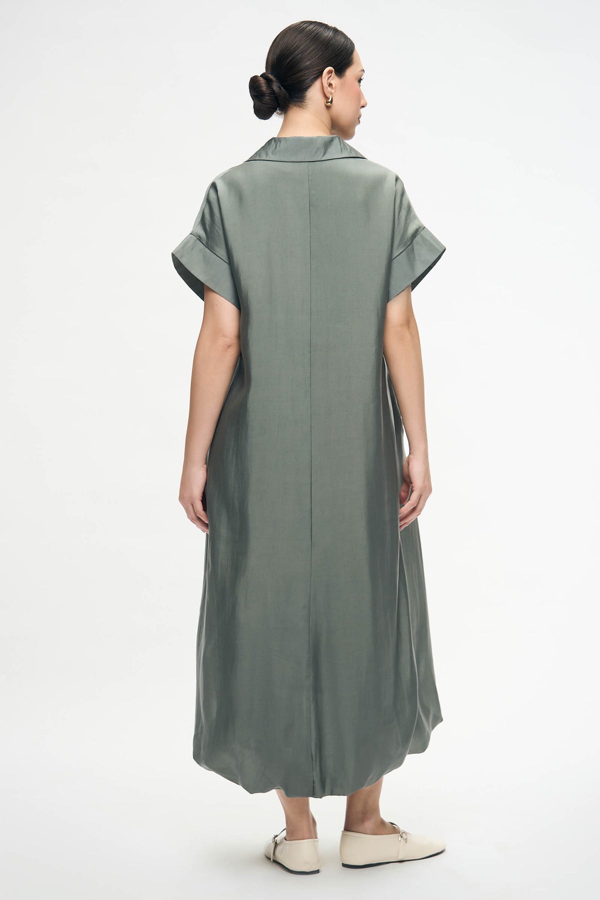 • Design Details: Open Placket, High-low Bubble Hem, Sleeve Band, Diagonal Seams