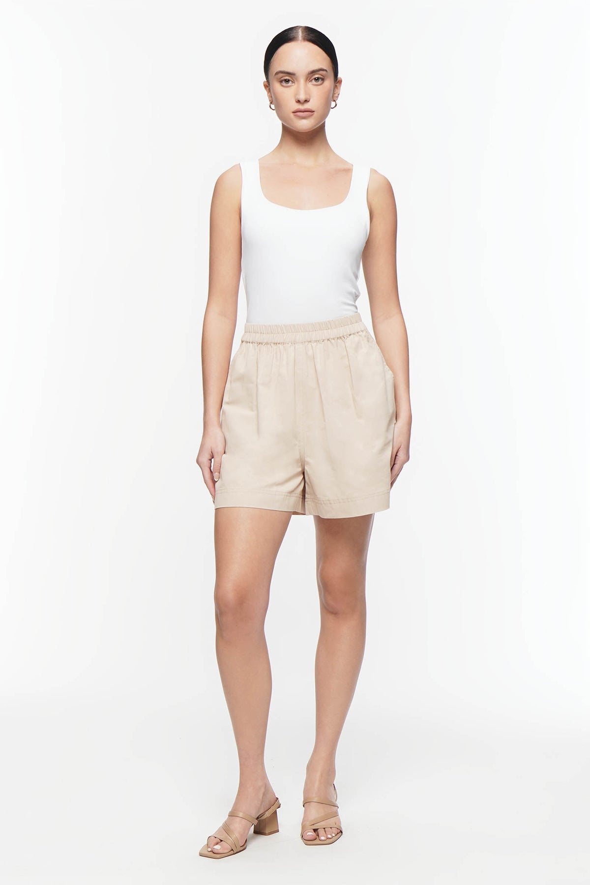 • Design Details: Elastic Waistband and Front Slanted Pockets