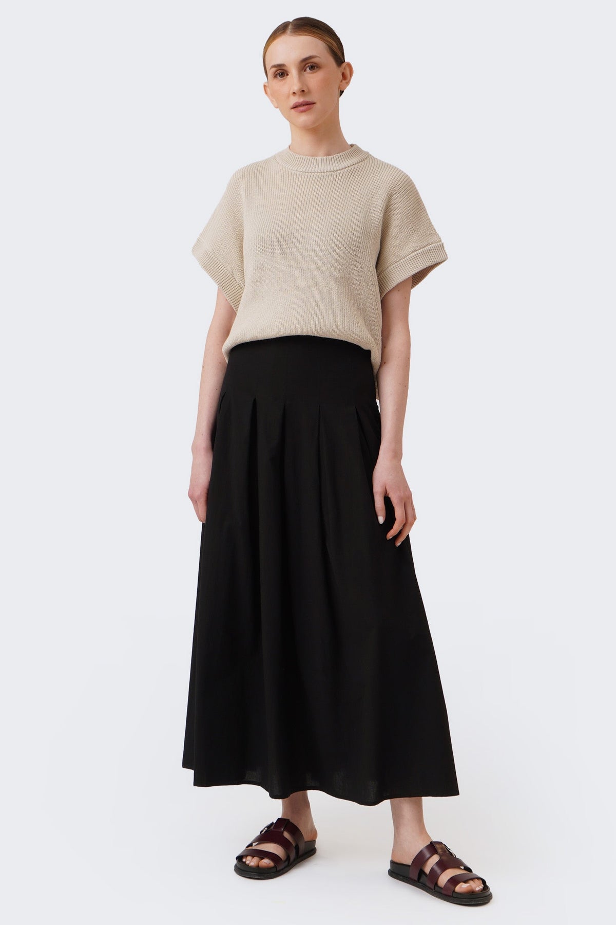 Women's Tucked Pleats A-line Maxi Skirt